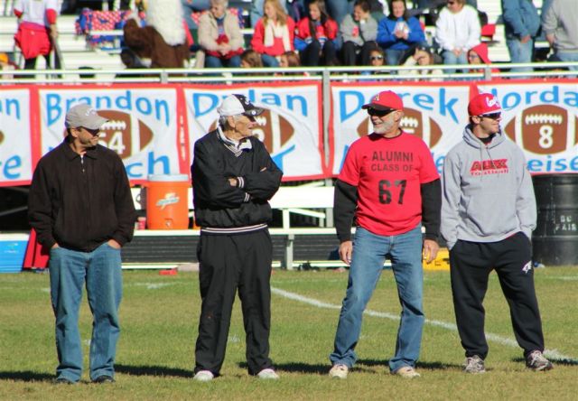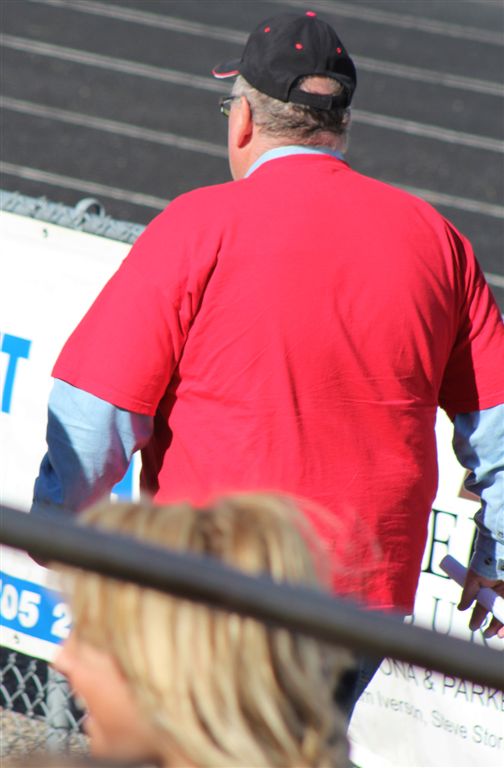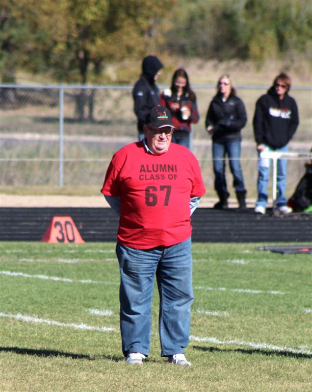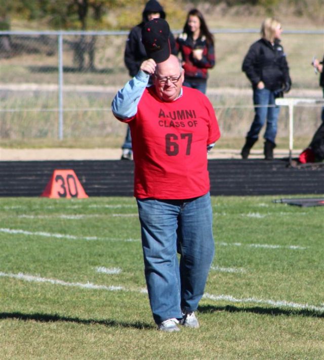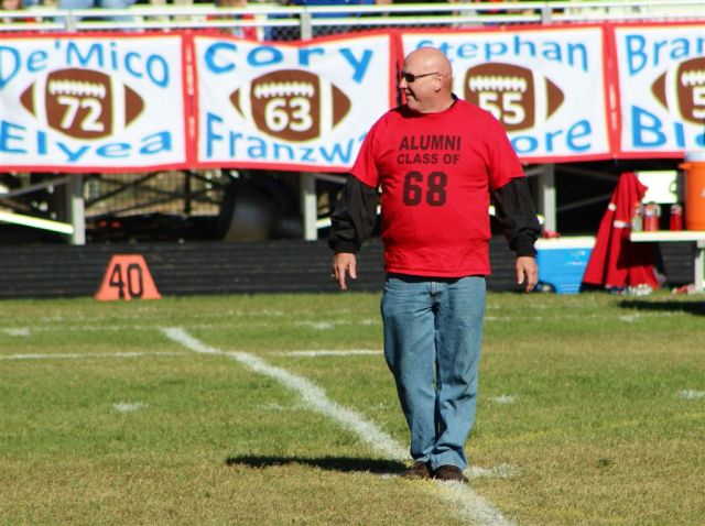 [Blog contributor, Al Grundei, headed to the restroom or to the field for halftime alumni introductions, whichever came first.]