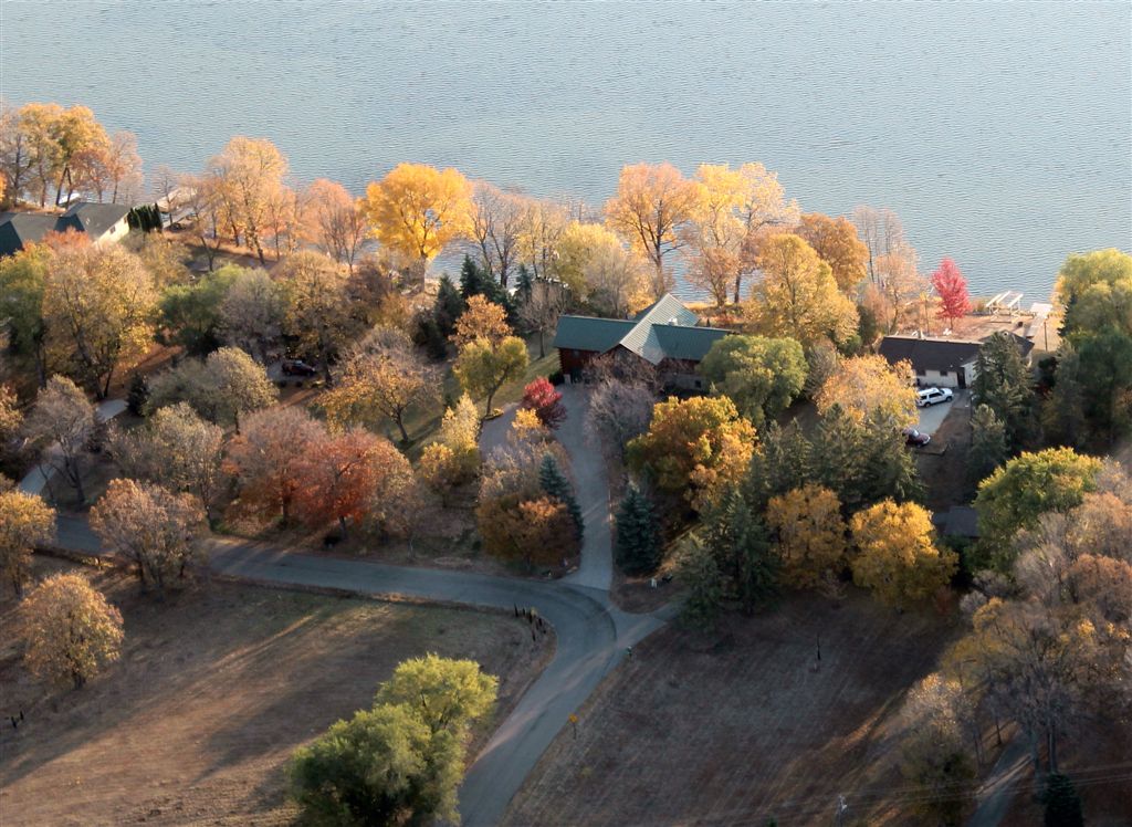 [You can see our green steel “+” roof center left, with the aforementioned Lee Norwegian red maple lake side by the Moby Obie.]