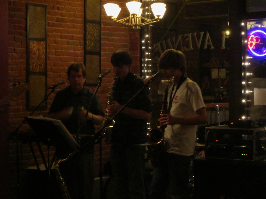 We were late arriving at SAWA – a meeting, then volleyball. Funky Gumbo was playing. We did not know until we got there that it was Mike Gill’s last performance with the group – he is going to grad school, majoring in saxophone, at either Kentucky or Northern Colorado. He has been with the group for 3 1/2 years. They finished the show with Mike’s “signature” song, Sweet Home, Chicago, a 10-minute version that blew us away. Ruthie has always been a big fan! 😉 Unfortunately, my camera decided it wasn’t going to be in focus (?), so it’s like looking at them play under water – but the sound is OK.