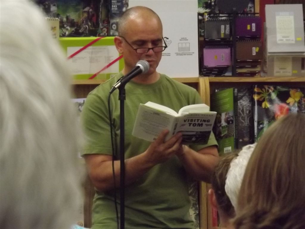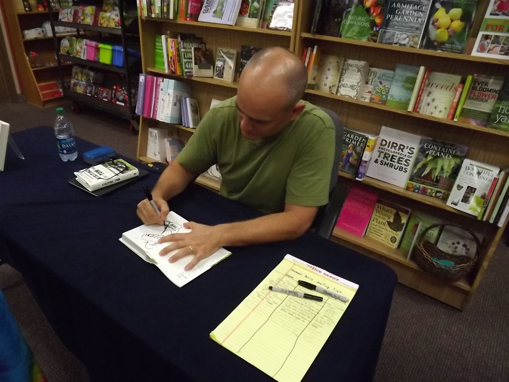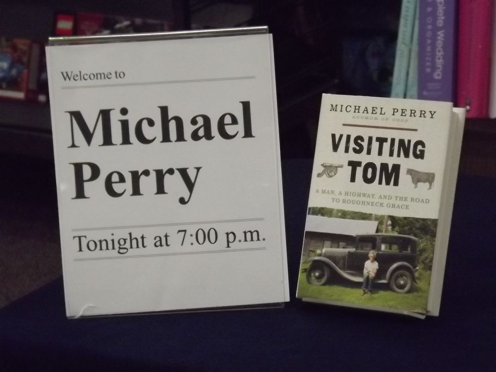 [Signing one – for me! 🙂 To Tom (“Tom” circled from the title and arrowed to it’s position behind “To”) – BOOM! Michael Perry The “Boom” is a reference to the vintage cannon on Tom’s property that he occasionally fires because . . . well, it’s a cannon.]
