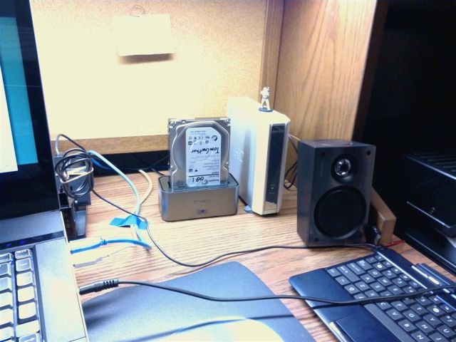 [Continuing the college dorm room theme, this is Tom’s “toaster.” This is something way beyond the realm of my comprehension, but apparently it is some sort of storage device containing the entire knowledge of the known universe, purchased with the aid of a monthly stipend from the supervisor (as I recall).]