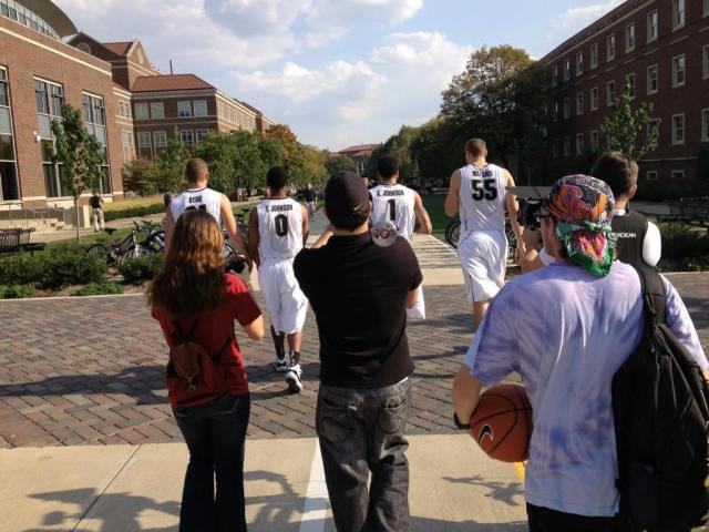 [Tom, a/k/a, Mr. Tie-dye, already participating in the Media Graphics Department promo of the Boilermaker basketball team. 🙂 ]