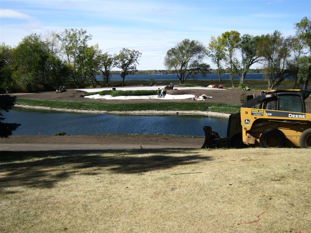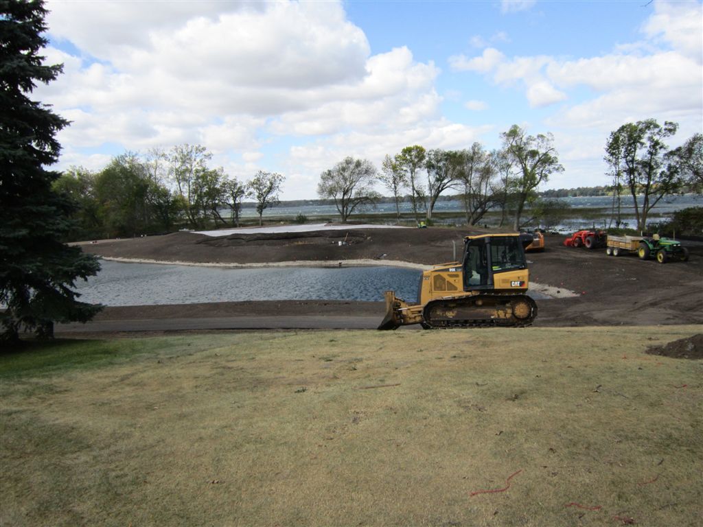 [We got good feedback on the aerial views of the Hole No. 7 reconstruction at the Alexandria Golf Club. A chronological view from ground level will provide a nice respite from a multitude of quotes. This is looking from the 6th fairway toward No. 7 and Lake Darling on September 19.]