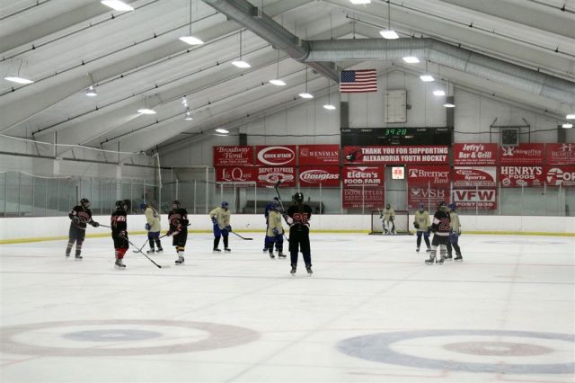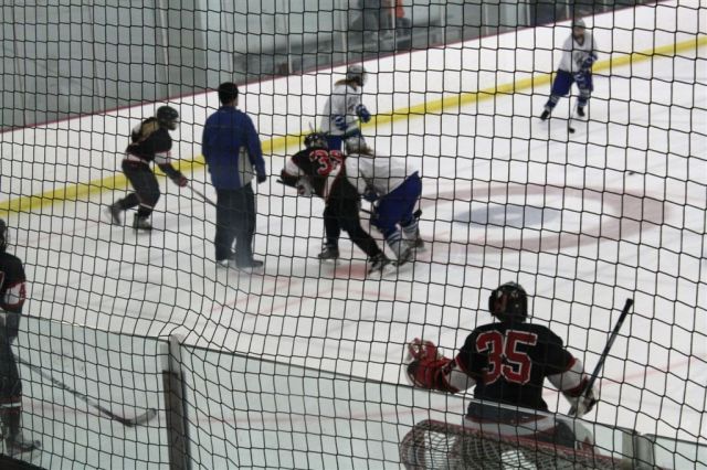 [The final photo. Our 3rd goalie, 35 in white jersey, got playing time. Coach Andy Shriver on the right. We’re looking forward to the start of the season! 🙂 ]