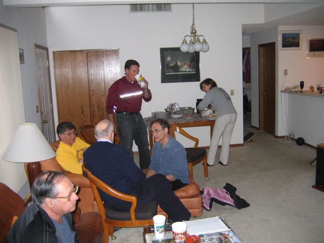 [Libby and Hans arrived next. They were co-hosts back in the early days and it’s still Hans’s job to carve the turkey. He is also known in this blog as the guy who took the great black and white photos of Uncle Dick in the early 70’s.]