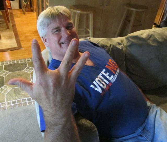We stopped at brother Cam’s and sister-in-law Karen’s Mounds View abode on the way to the turkey in Woodbury. We had not seen Cam since his industrial accident that caused the loss of the middle finger on his right hand. Little did he know that working on a 2nd degree in horticulture at age 58 would be so perilous!
