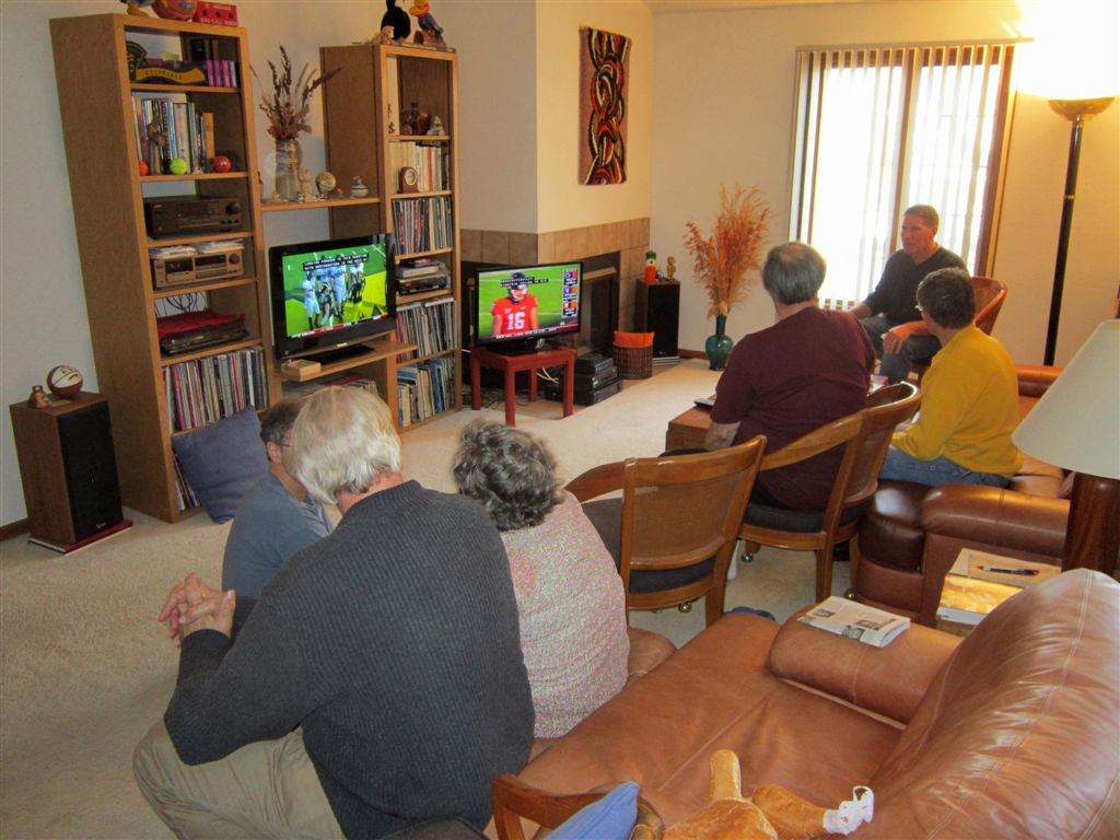 Saturday marked either the 40th or 41st edition of Thanksgiving With Basketball Dan (note other sites herein). We’re not sure if the first one was when he lived on Larpenteur Avenue (originally Minneapolis Avenue for you Trivia buffs) or Como Avenue. It for years coincided with the Michigan-Ohio State football game, and the guys (and later some gals) from a time far away and long ago at the ‘U’ would gather at Dan’s for an afternoon of turkey and football (multiple TV’s going on multiple games). Subsequently, all were joined by some of his peers in academia at St. Thomas. A distinguished group, or so they say. Looking back now, as we do at these events, we have the odd realization that our generation has been in charge of the country . . . and the world, and now we’re getting ready to hang it up and go watch girls’ hockey.
