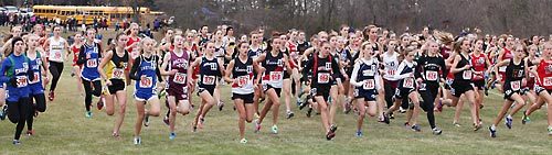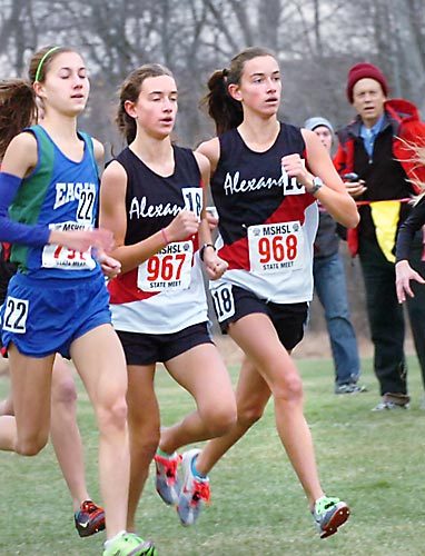 [At the sections on October 25. Bethany has subsequently qualified for the nationals in Oregon by finishing 5th at the regional meet in Sioux Falls; Megan just missed at 9th. Congrats again to both of them (Echo photos).]