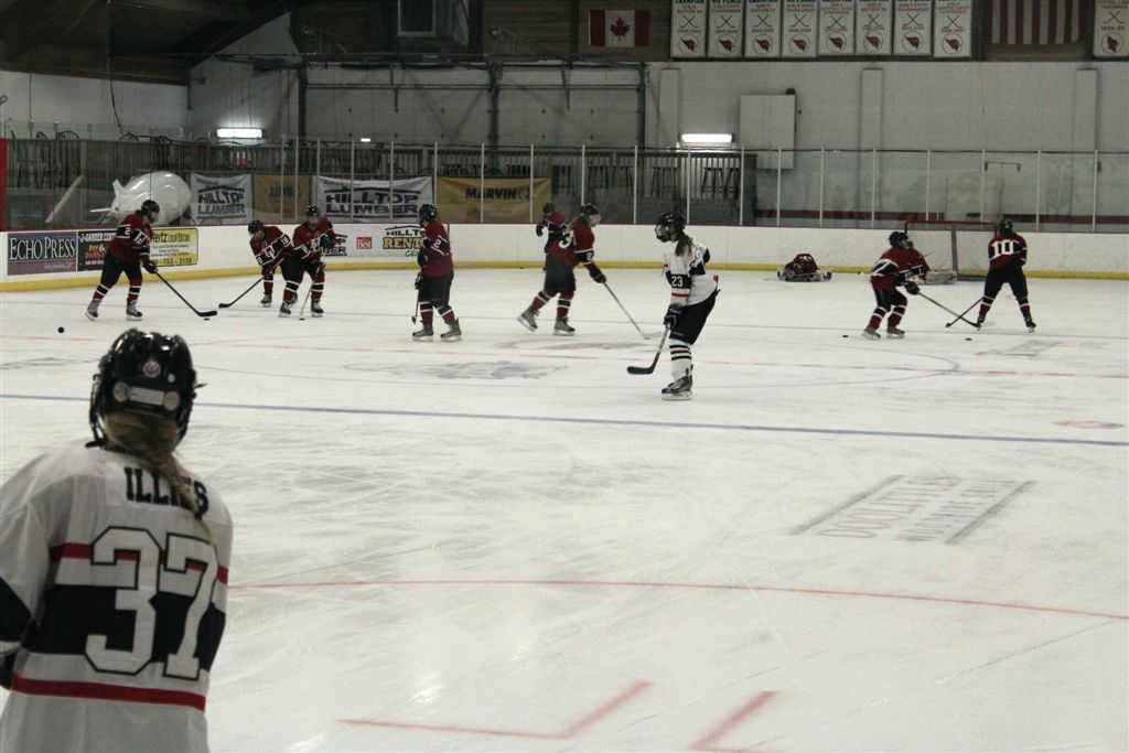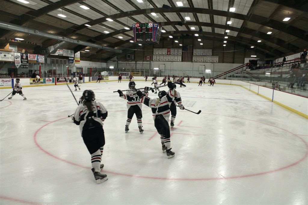 As a change from previous years’ coverages, this is a video of the beginning of the 2nd period. There is no particular reason for this – although the supervisor and I did arrive at the arena later than planned because of the “stop and chat” aspects of an event at SAWA preceding the hockey game. It proved fortuitous, for seldom do we capture a goal. This time team captain, and homecoming queen (another shout out to our HQ 🙂 ), Shelby scored for us. Oh, at the end, Rachel took quite a hit – she did continue to play the rest of the game, but I bet she’s pretty sore today:
