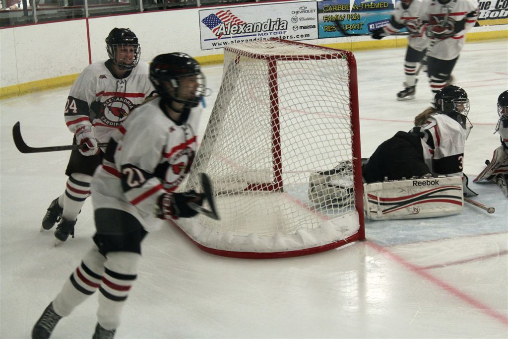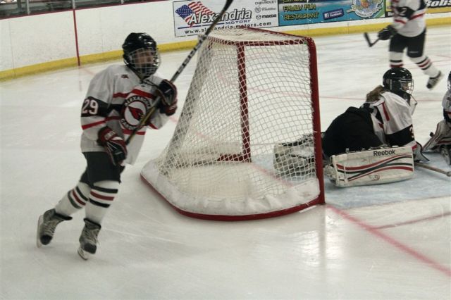 And so we begin. This was the Cards third game of the year. We lost the opener at North Metro, 4 – 3 – not bad considering it was the first varsity start for our freshman goalie, and we outshot the team that’s a conglomerate of 5 or 6 schools, each alone larger than Alex, by a 2 – 1 margin. Then we won 3 – 0 at Fergus on Tuesday. Then last night’s win against the Lakers means we had back-to-back shutouts against the two teams who are traditionally our strongest competition in the section. All-in-all, an impressive season’s debut. Now the team has to deal with the motherlode of high expectations. I think we’re in for a fun ride.