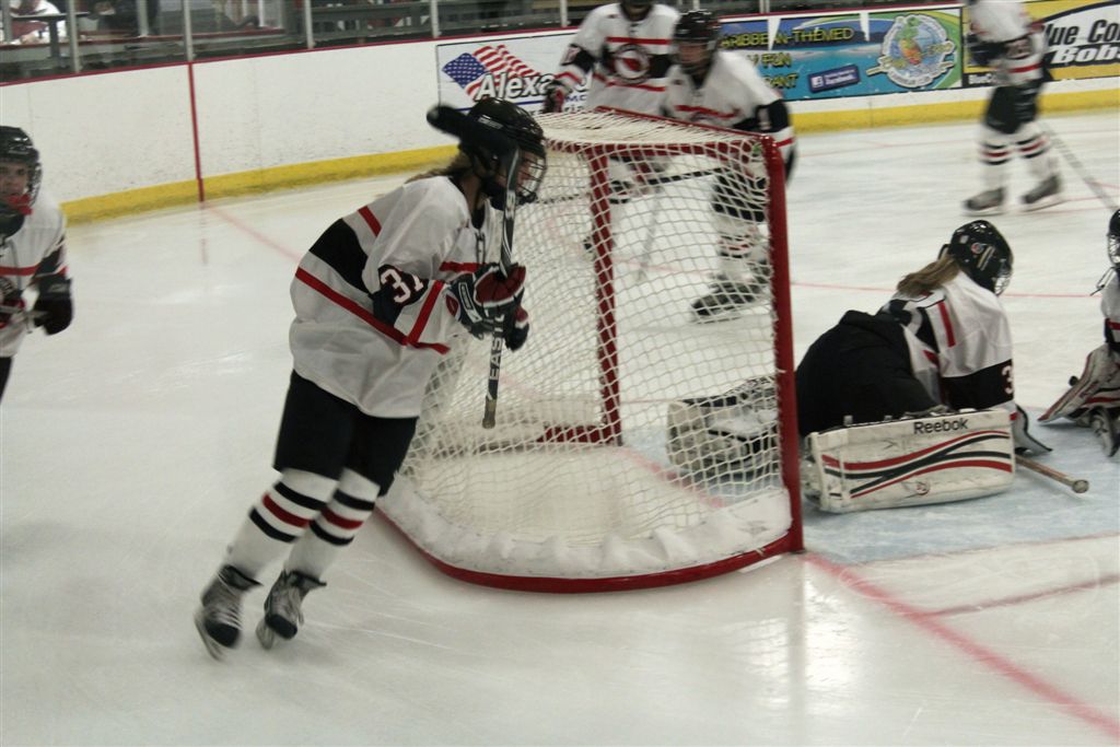 [Some time around here Becca scored a short-handed goal making it 3 – 0.]
