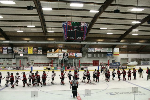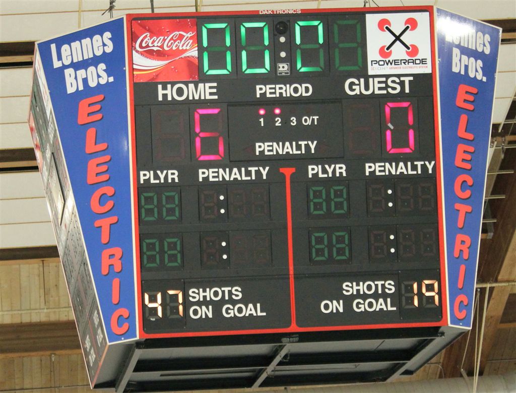 [Big crowd! Good turnout by the students. Saw the girls’ basketball team there. And the Super Fans almost filled our section! Good to see everybody again! Robo was back from the East, Bob and Vivian, Mike, Mitch and Jeanne re-joined the group, Karen, Roger, Ted and Jerry were standing above us, newcomers Jeanne and Ken, and the supervisor and me. I wanted to get shots of us – and the hockey moms – but I couldn’t get out!]