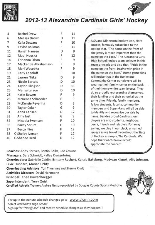 p.s. Unfortunately, we also got word yesterday from her folks that Kalley Kragenbring has been advised by her doctors she should not play hockey anymore. Kalley suffered two concussions last season and missed the last part of the year. She was really hoping she’d be ready to play again this year. When that was ruled out, she hoped she play next year, her senior year. Now that has been advised against as well. We wish Kalley all the best and hope first and foremost that she gets healthy again. She plans on staying with the team to help manage – and skate with the coach when she can. Here are some photos from last year – Kalley is No. 10, a terrific goal scorer, and the girl in the glasses on the left at the team banquet.