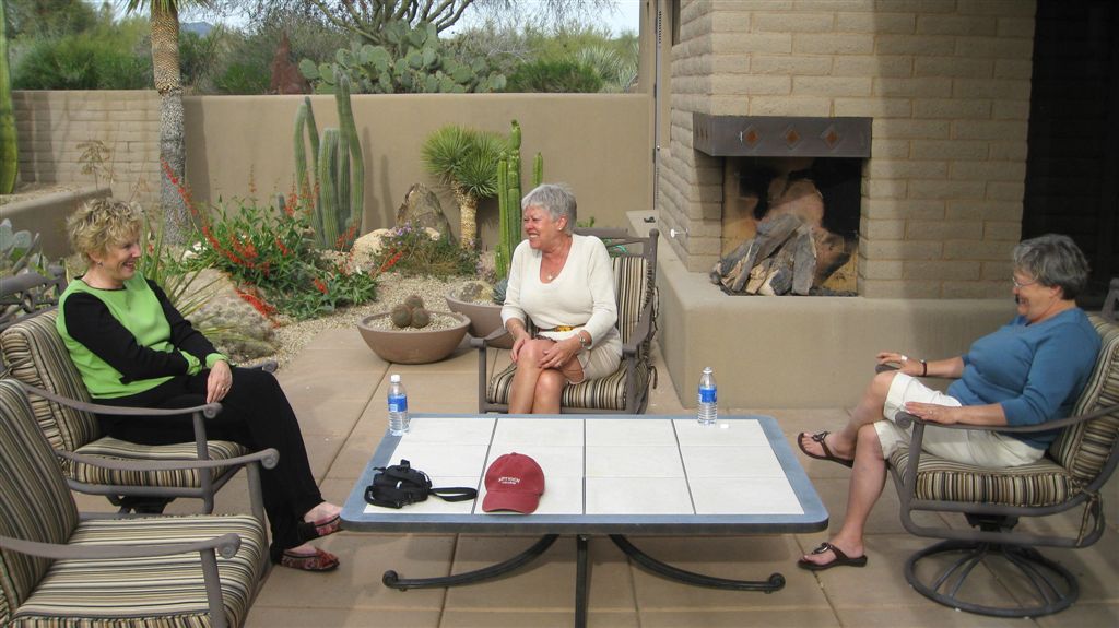 [If these photos seem randomly placed, it’s because they are. I just plucked them from four old flash drives in no particular order. Who wants to work hard enough to organize them? Anyway, Aunt Mary Kay (a/k/a, Mookie) and The Biddies share a laugh in Mookie’s front yard in Desert Mountain, Arizona, 2009.]