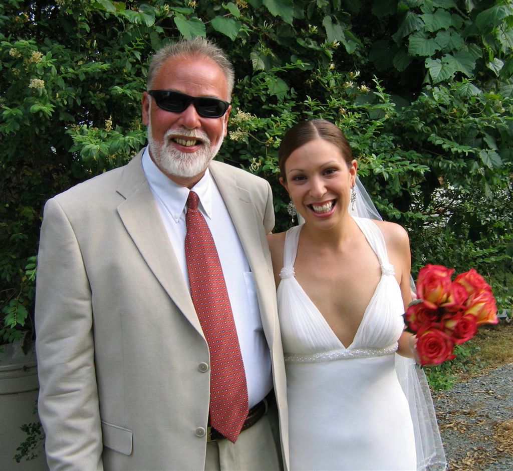 [Father of the bride with his daughter. And why “beautiful bride” is redundant.]