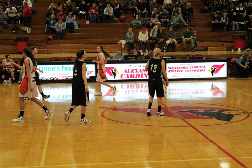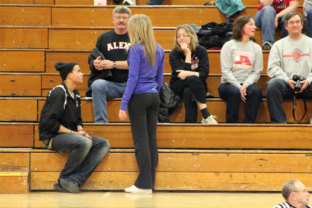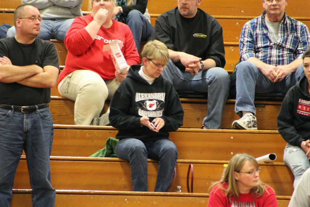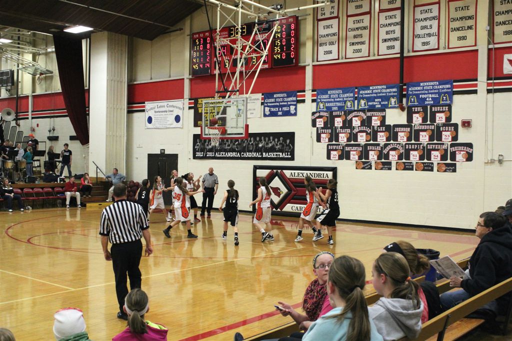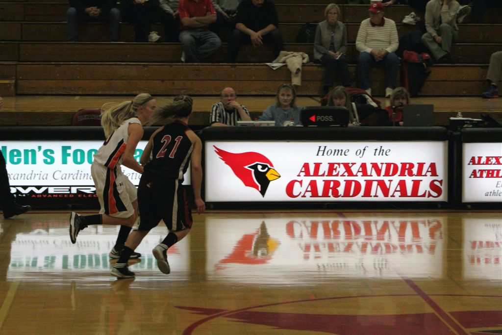 You will note as the players align for the opening tip that the Cardinals are player-for-player a full head smaller than their Tiger counterparks. This once again brings into question the general wee-ness of our athletes. I have a new theory. We are on the edge of the prairie – the supervisor will tell you she had no idea Alexandria was so windy! Thus, an evolutionary adaptation was to produce smaller people to avoid a “sail effect” when buffetted by the wind. As you move even farther west, to Fergus or Moorhead, for example, the wind is such a factor that the only recourse was to grow larger, heavier people to help keep them grounded during the daily gales. Similarly, St. Cloud is far enough “inland” that the wind is less of a factor and people can grow to sizes large enough that, like me, they are constantly banging their heads on low-lying impediments. Well, that’s my theory and I’m sticking with it!