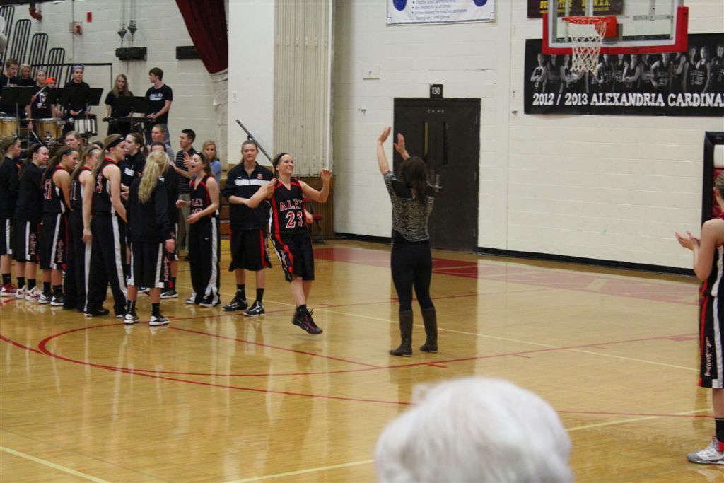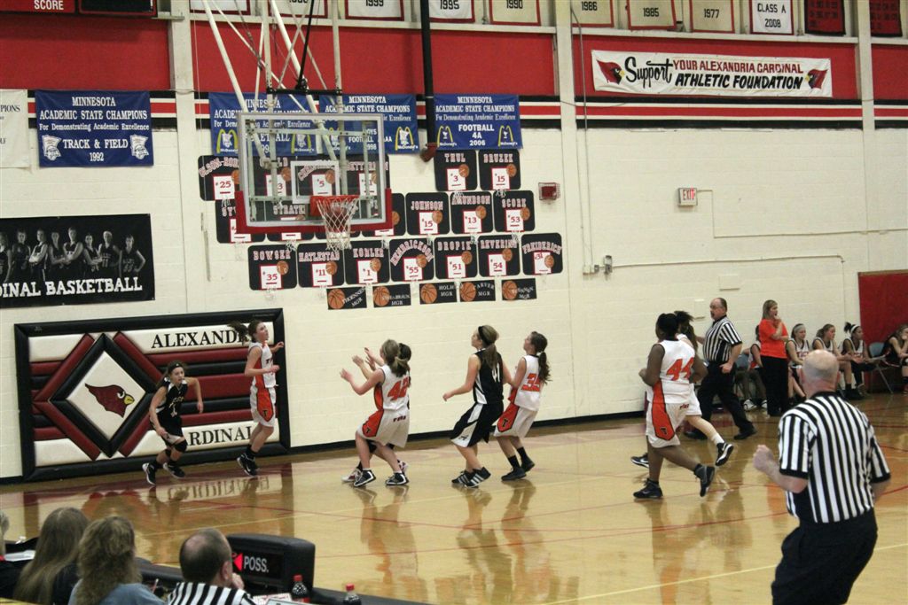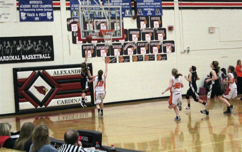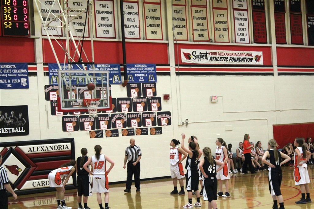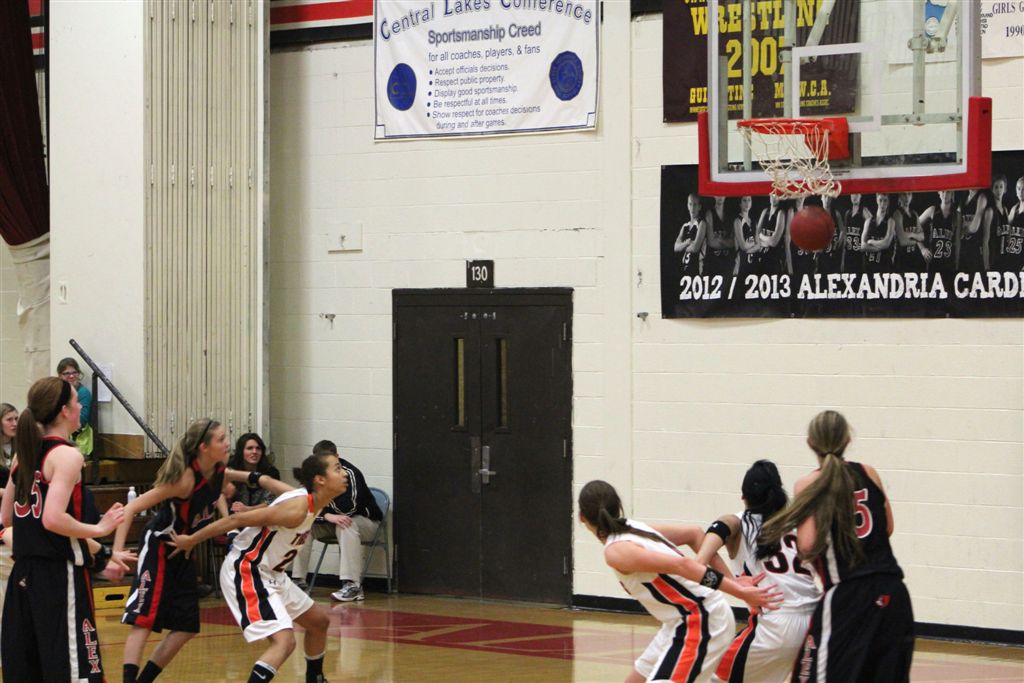 You will note as the players align for the opening tip that the Cardinals are player-for-player a full head smaller than their Tiger counterparks. This once again brings into question the general wee-ness of our athletes. I have a new theory. We are on the edge of the prairie – the supervisor will tell you she had no idea Alexandria was so windy! Thus, an evolutionary adaptation was to produce smaller people to avoid a “sail effect” when buffetted by the wind. As you move even farther west, to Fergus or Moorhead, for example, the wind is such a factor that the only recourse was to grow larger, heavier people to help keep them grounded during the daily gales. Similarly, St. Cloud is far enough “inland” that the wind is less of a factor and people can grow to sizes large enough that, like me, they are constantly banging their heads on low-lying impediments. Well, that’s my theory and I’m sticking with it!
