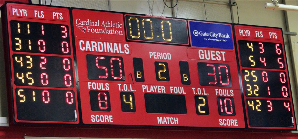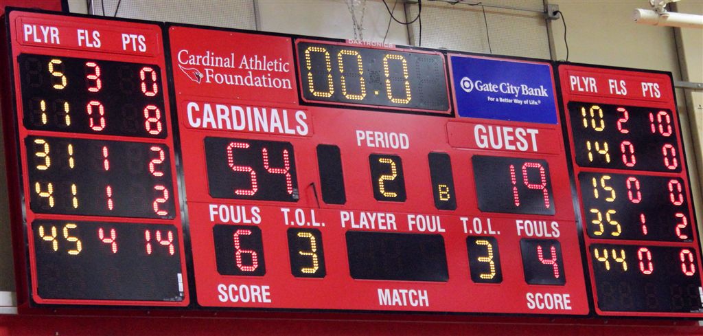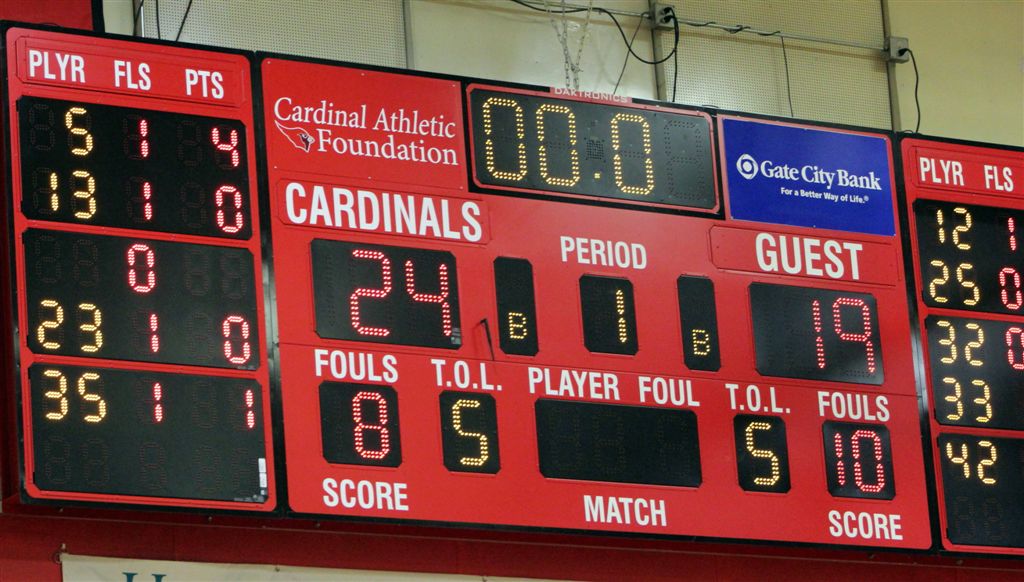 [The 9th grade game is on the far court. The Cards had a double digit lead most of that game and hung on to win by 5 (I believe).]