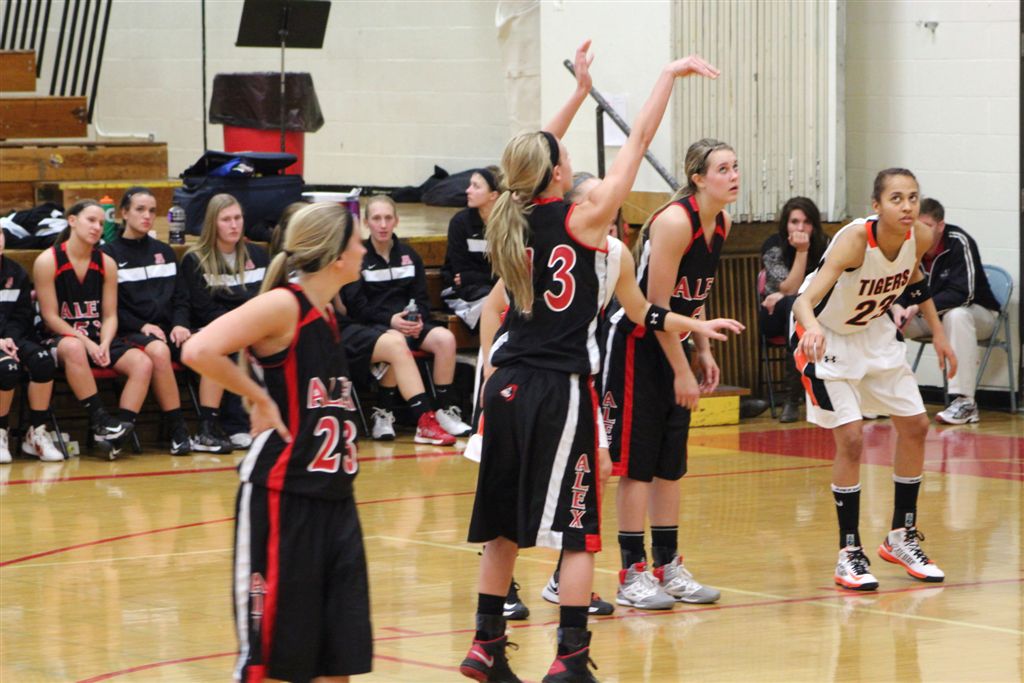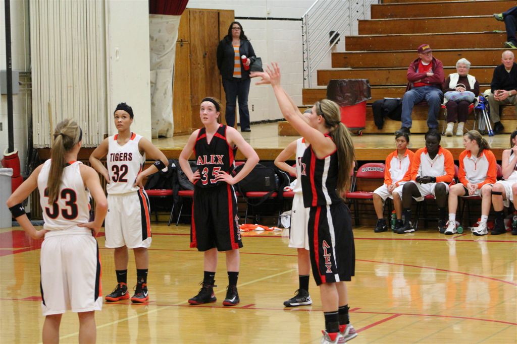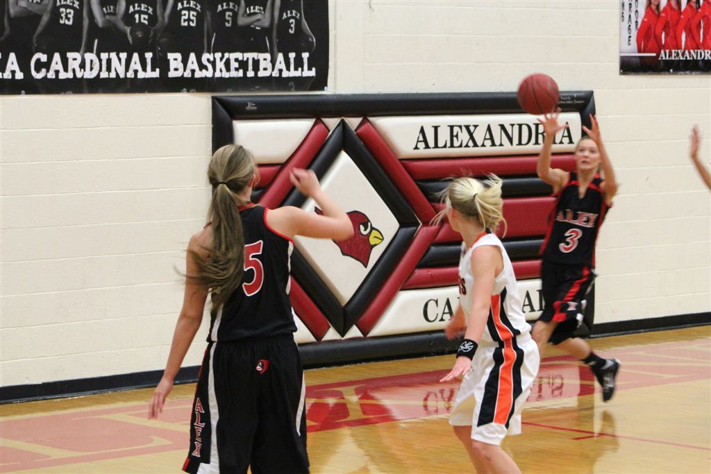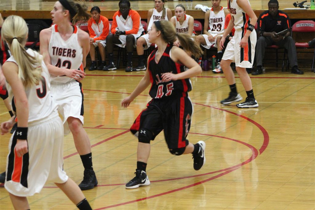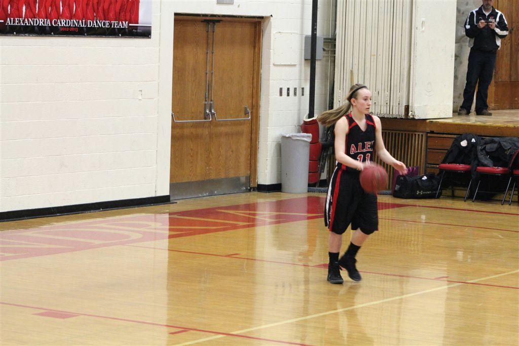 [Ms. Revering attempts a free one. That appears to be Carli Dropik (5), sophomore, on the left lane – she was impressive in this game with her ability to get out and go.]