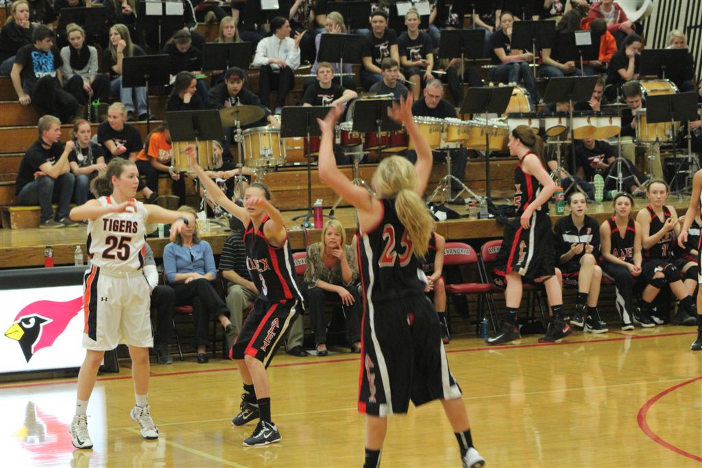 In any event, looking at the match-ups it appeared our Cards were going to be overmatched. The Tigers were much bigger and appeared to be good athletes. Plus, they were undefeated in the conference. So, of course, Karly Betterman, all 5’5″ inches of her, went out and totally dominated the 1st half all by herself with her constant gnat-like defense and by scoring 16 points, which I believe is probably more than she has ever scored in an entire game – and the Cards went on to a 20-point victory. It’s why they play the game.