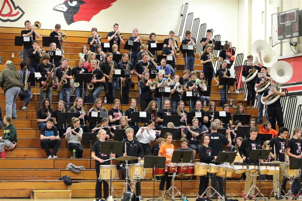 [Kohler’s attention-getting whistle at Williams Arena during the 2011 state tournament. Echo Press photo.]