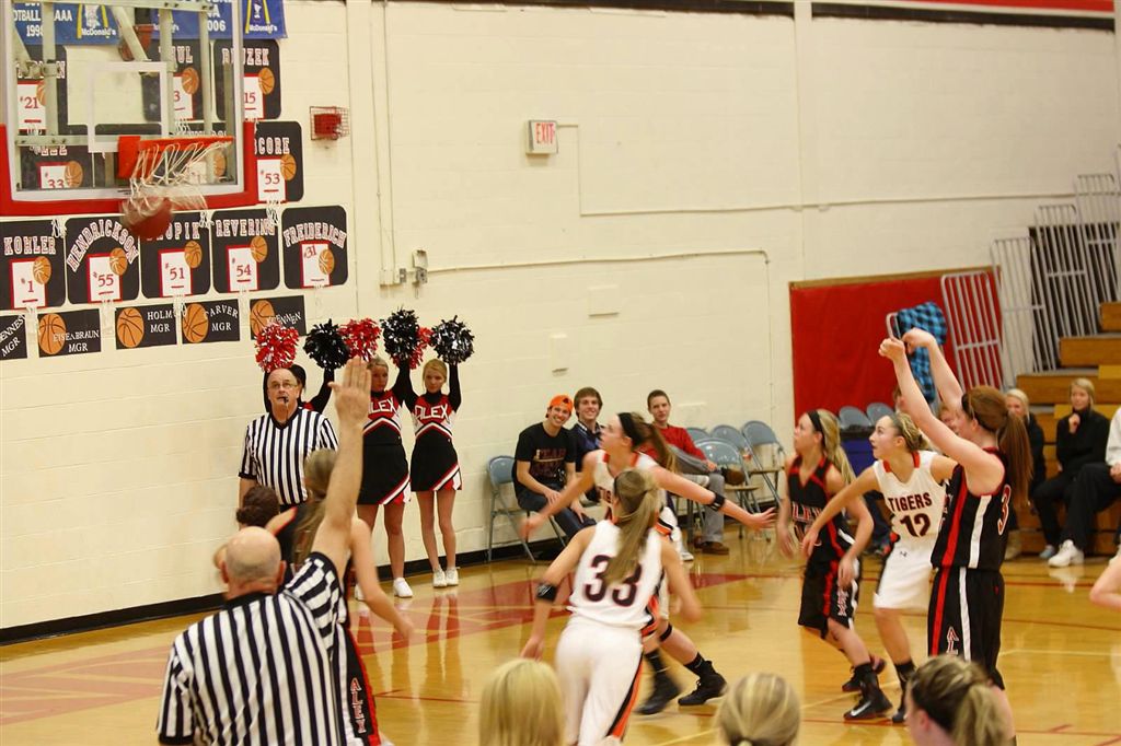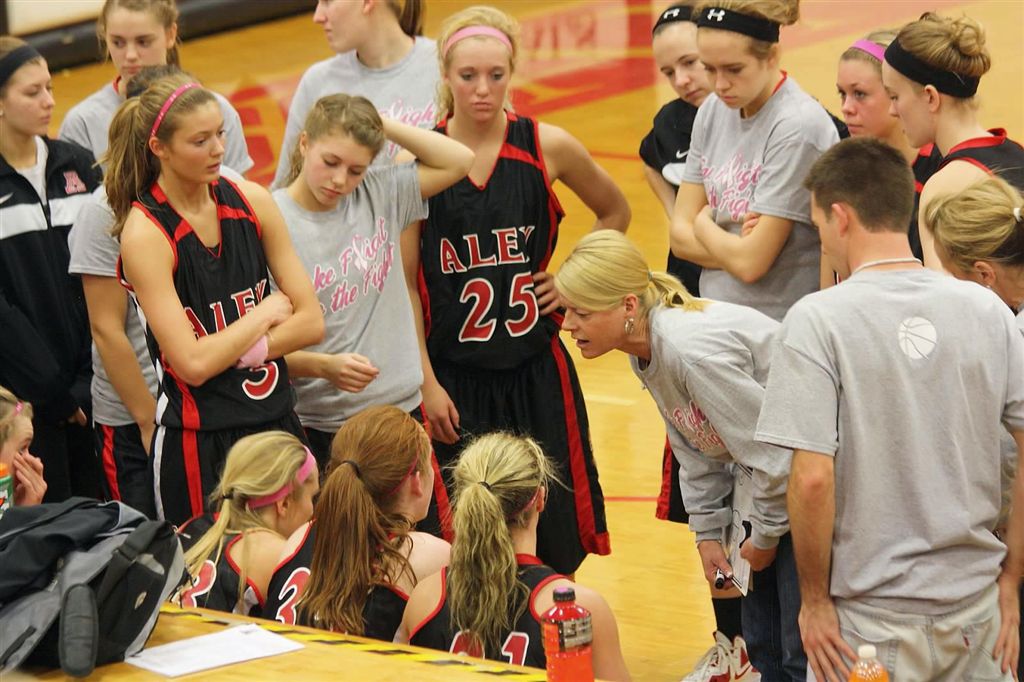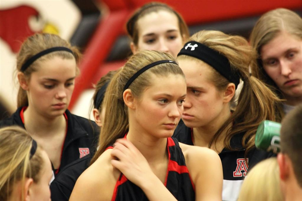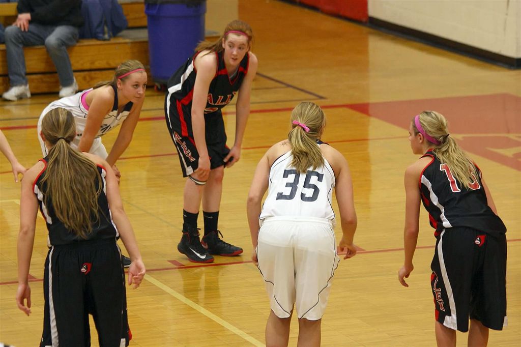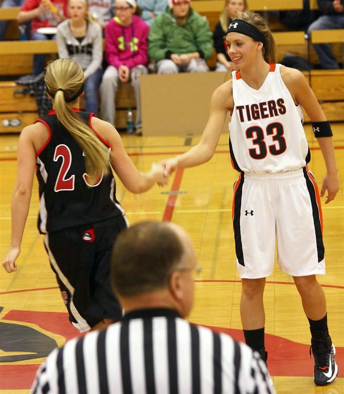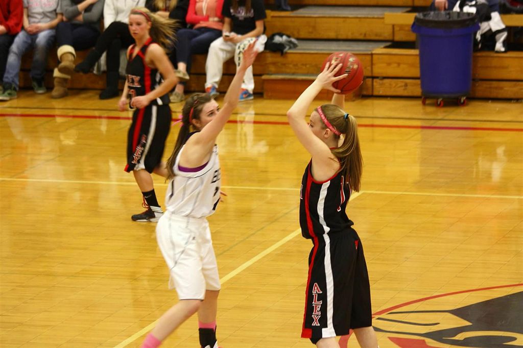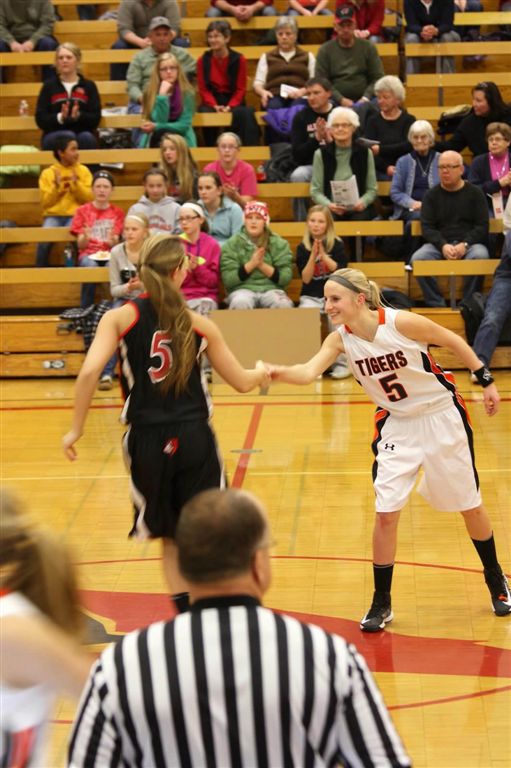 [Karly makes a free throw – on her way to a 16-point first half.]