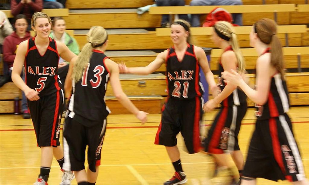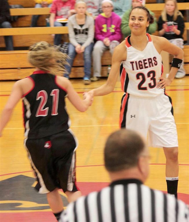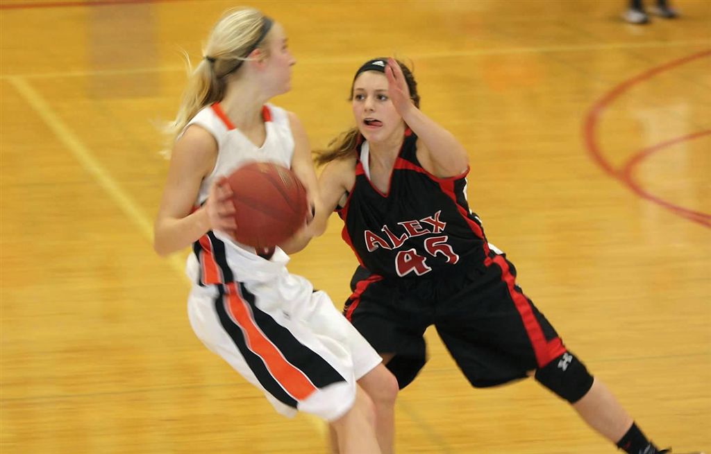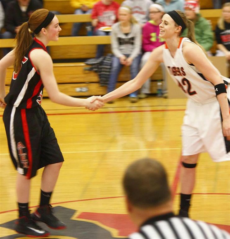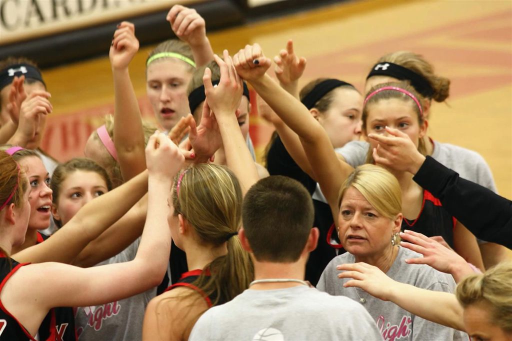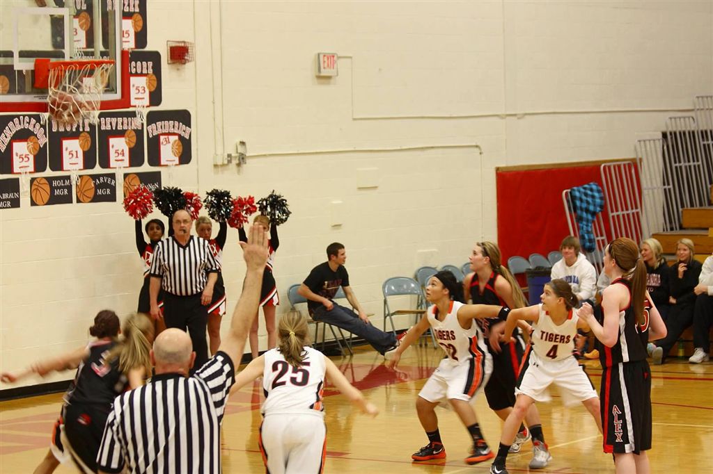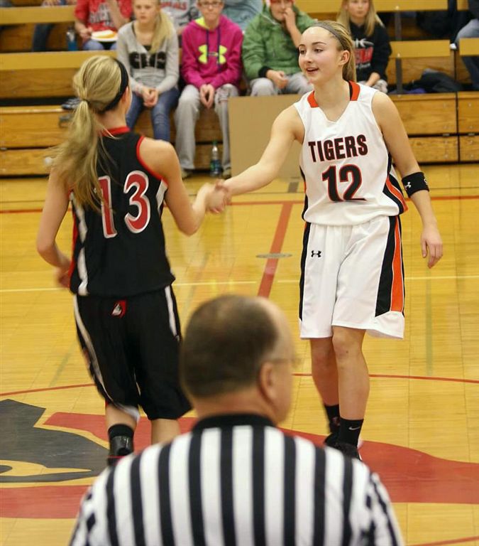 [Karly makes a free throw – on her way to a 16-point first half.]