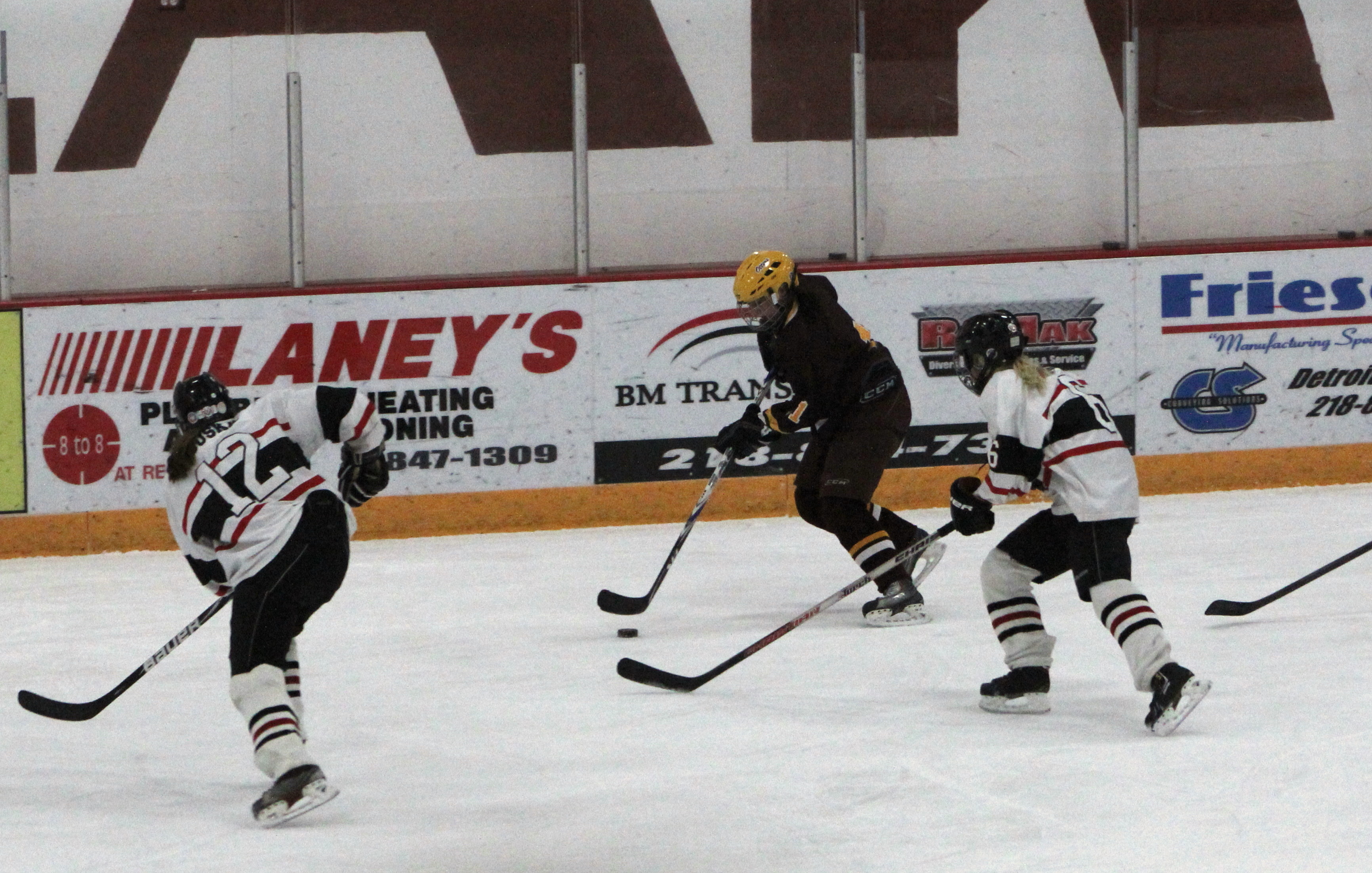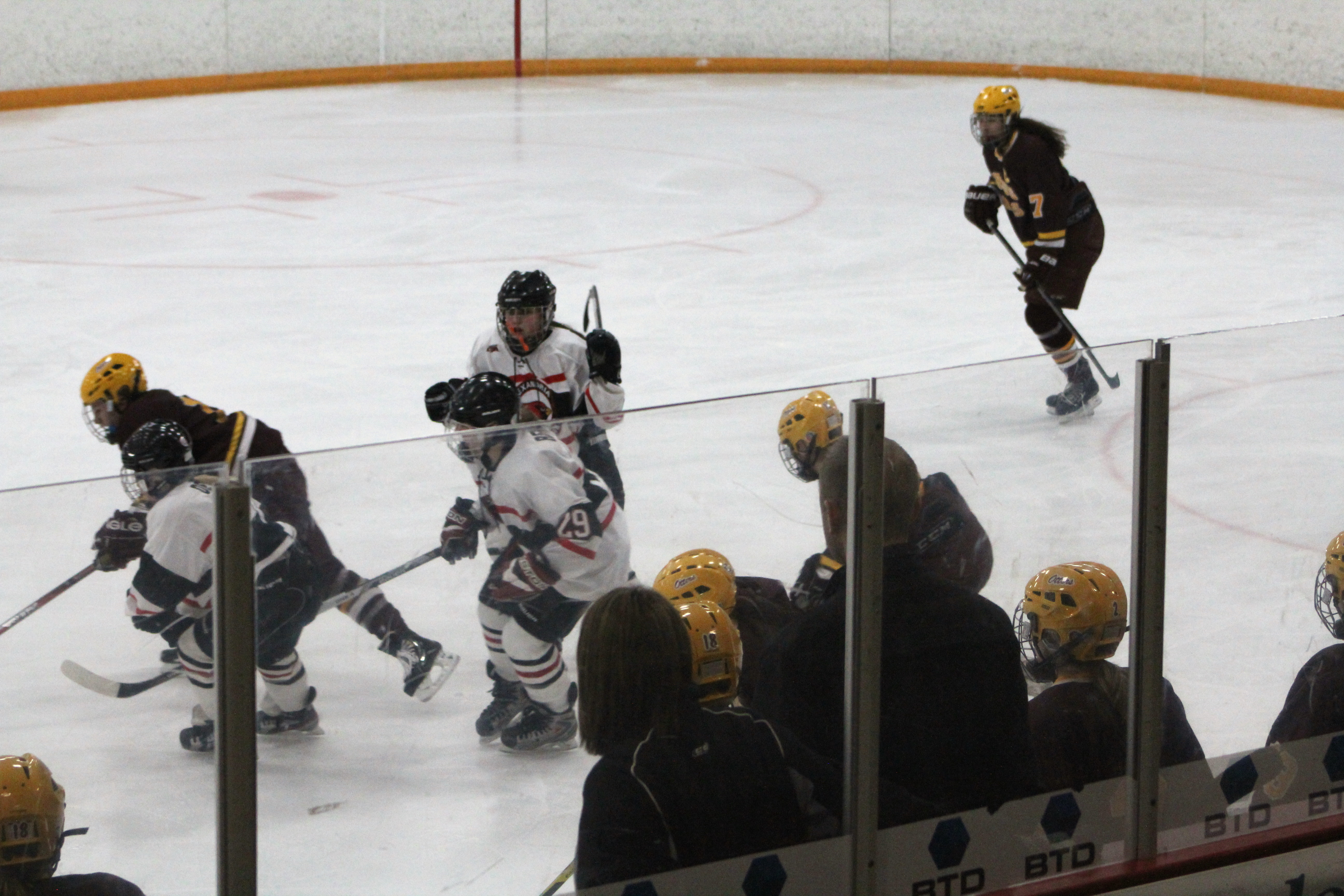 [Hanah. The 3rd line had some good early shifts. Later in the game, we used mostly a two-line strategy.]