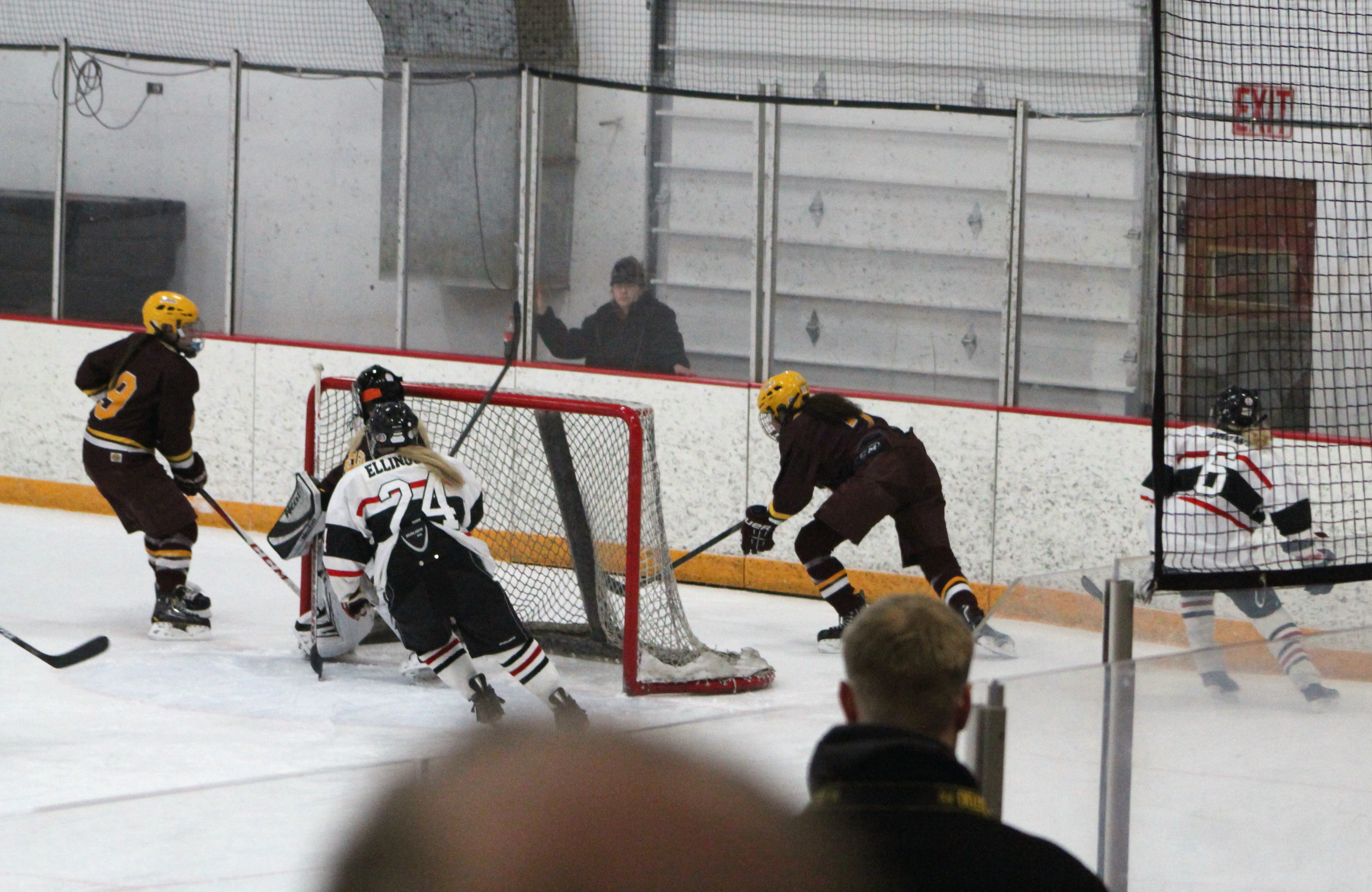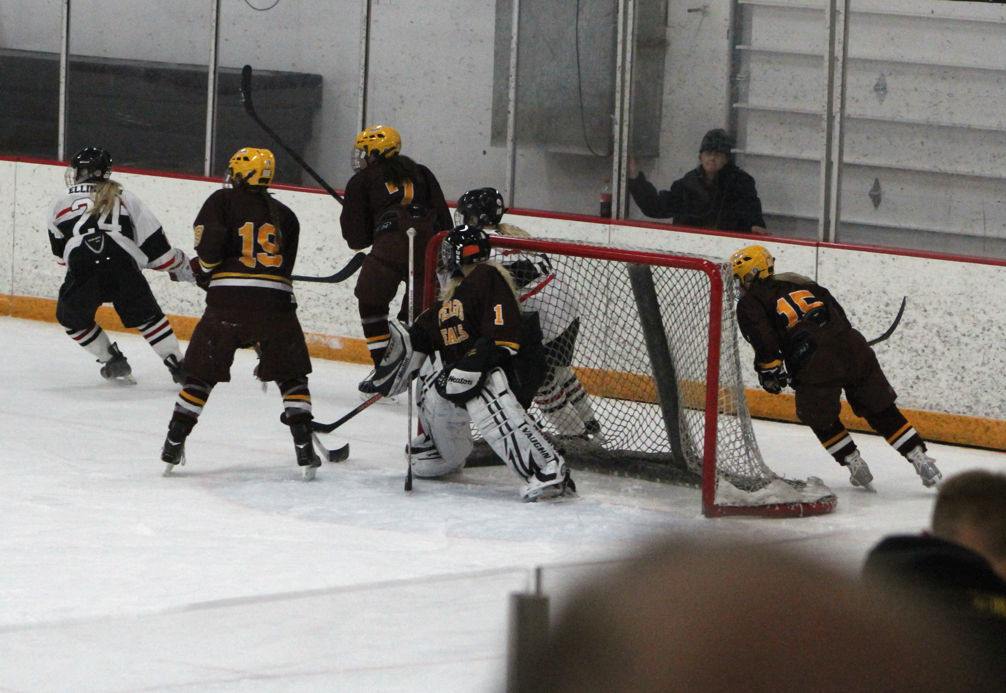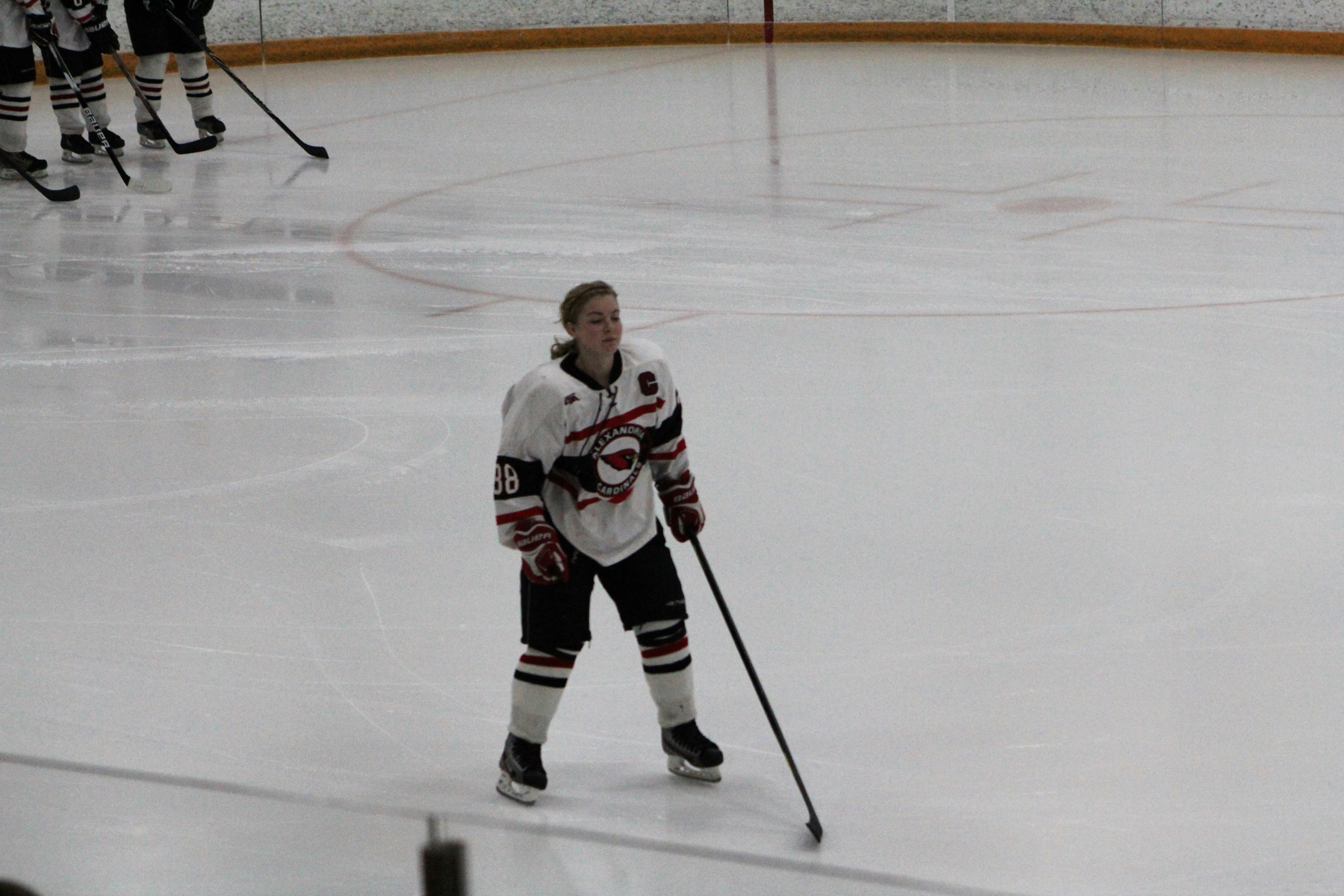 [Shelby with Britni DelCastillo, from last year’s team. Britni infortunately had to move to the Cities because . . . her dad is now the coach of the Hamline men’s hockey team!]