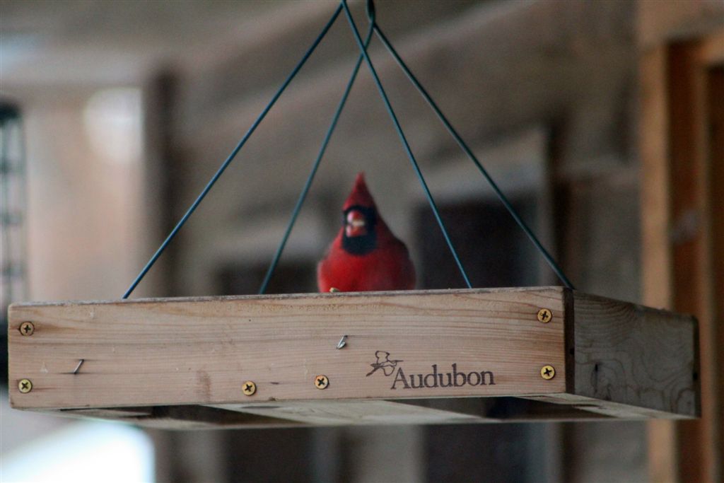 [After Saturday’s hockey game, we spent the night with Cam and Karen in Mounds View and thought it a good omen when we saw a Cardinal on their bird feeder that morning.]