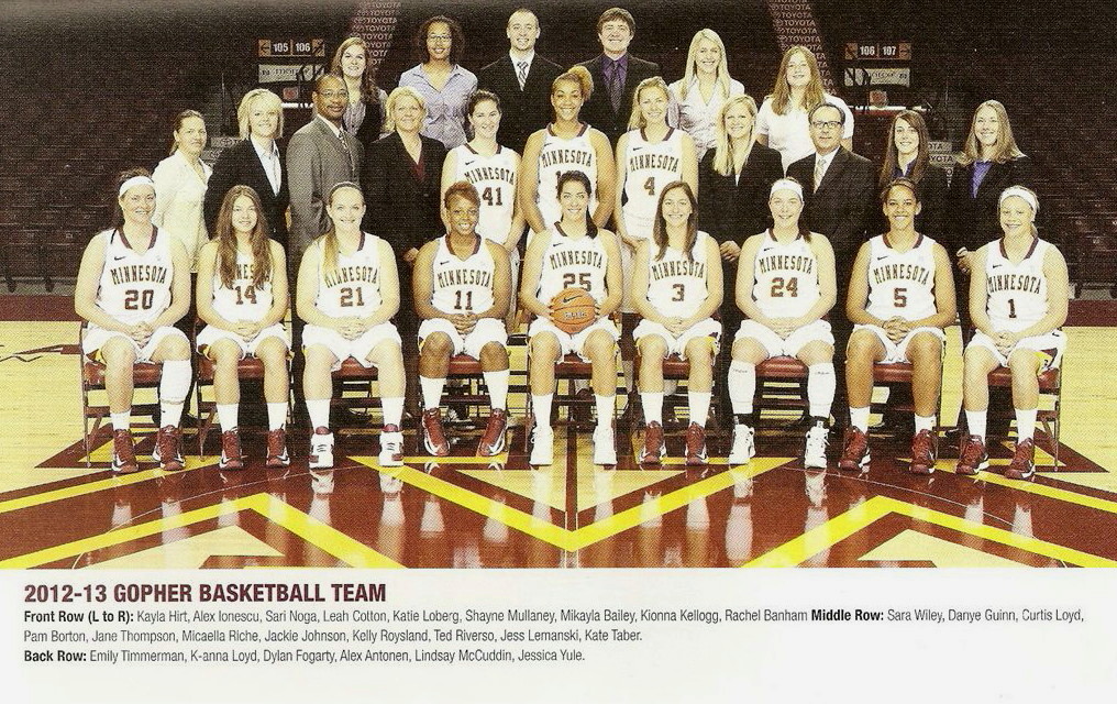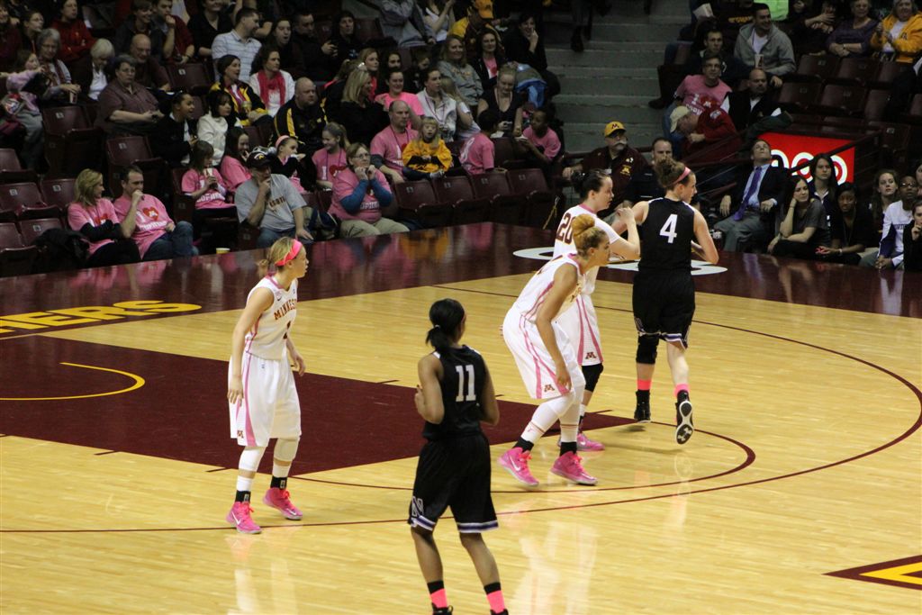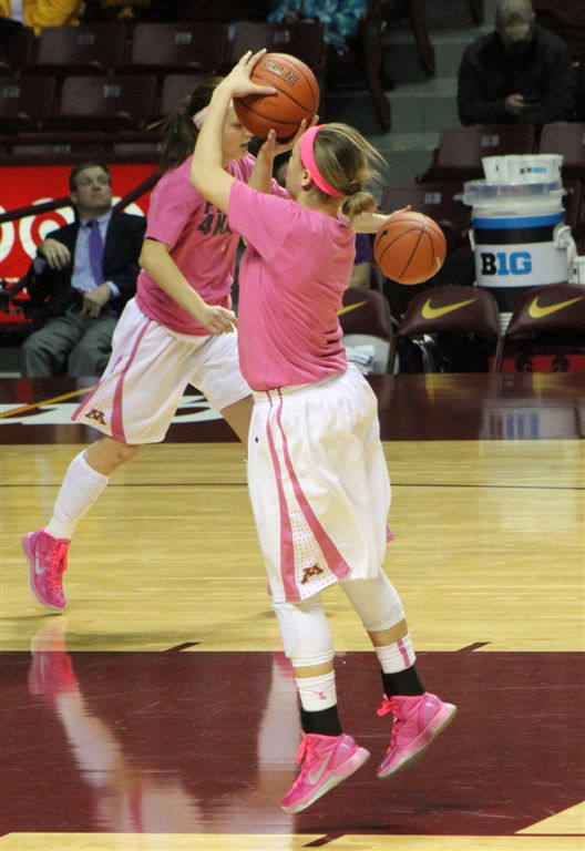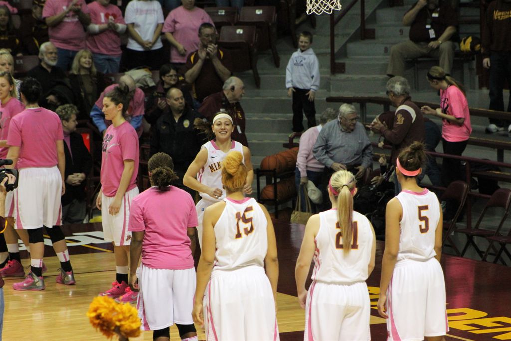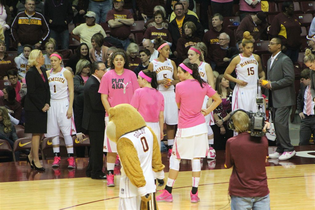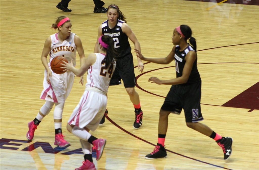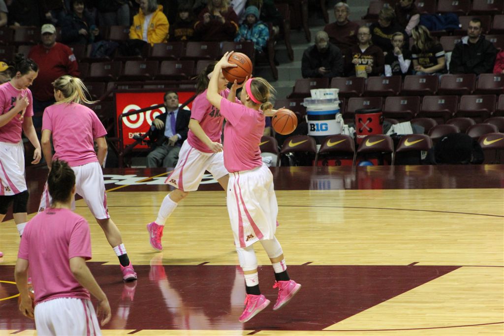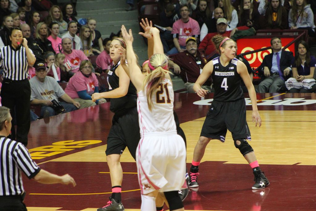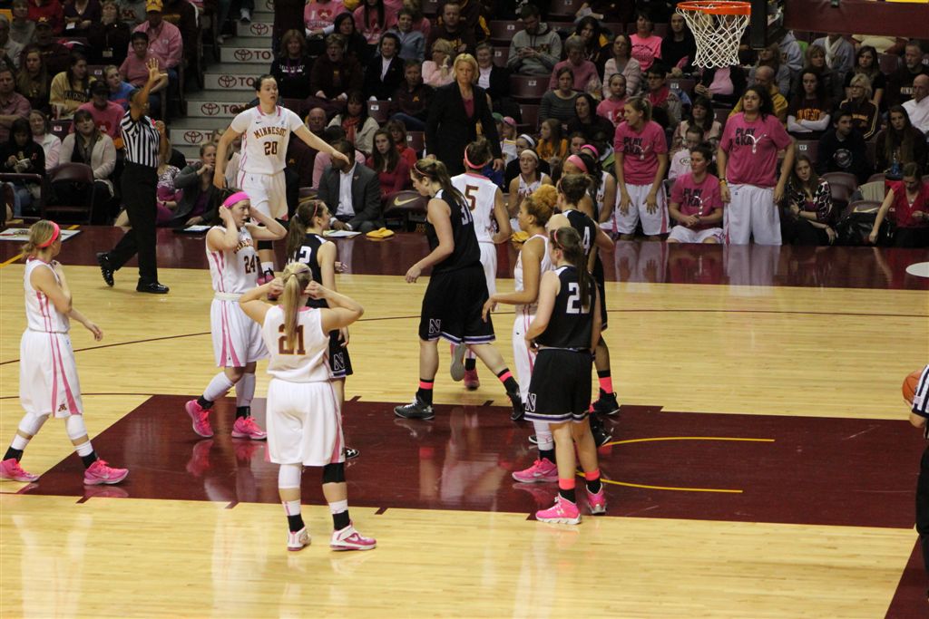 So now it’s the next day, Sunday. We went to Williams Arena to see the Gopher women’s basketball team play Northwestern. I have to be honest here – the Gophers are having an average year. I went to see Rachel Banham play. Rachel (1) is a 5’9″ sophomore guard from Lakeville and she leads the Big Ten in scoring. All the years Lindsay Whelan was starring for the Gophers, we always said we were going to gone down to see her play. We never did. I did not want to miss the next Lindsay Whelan.