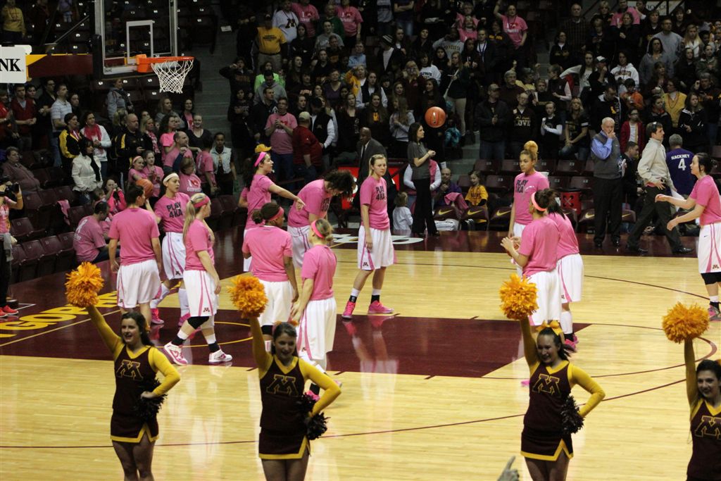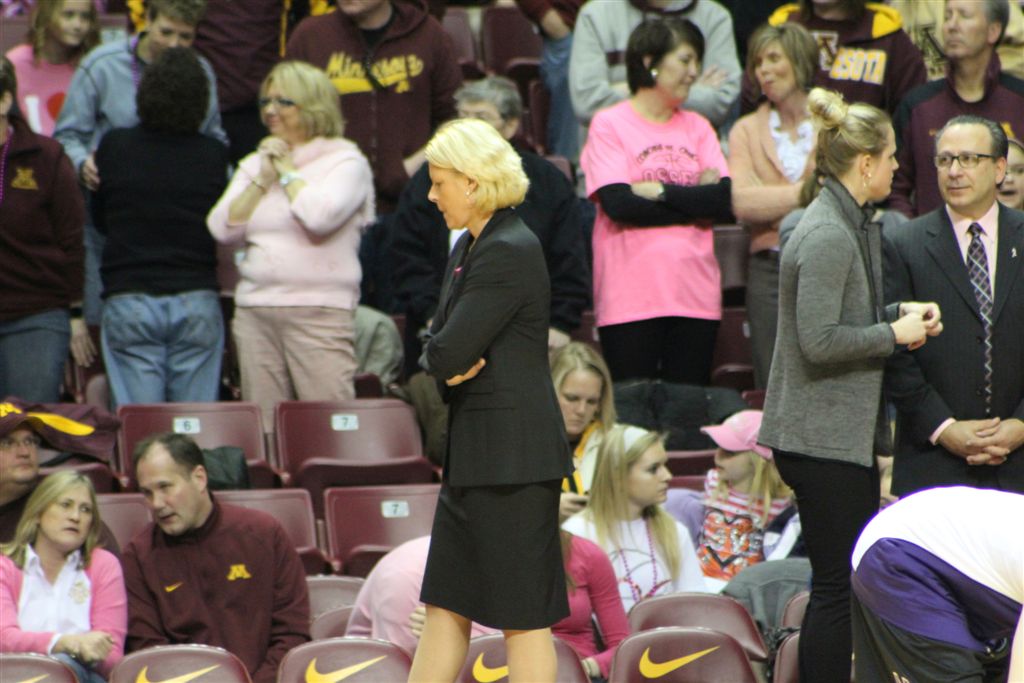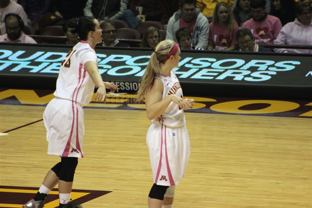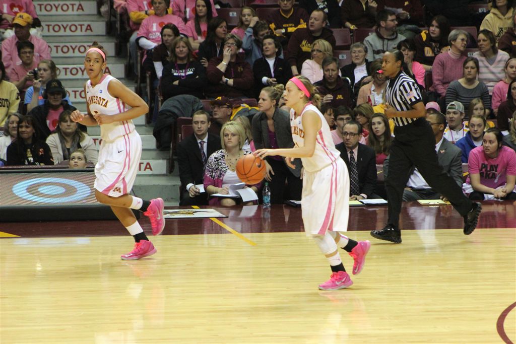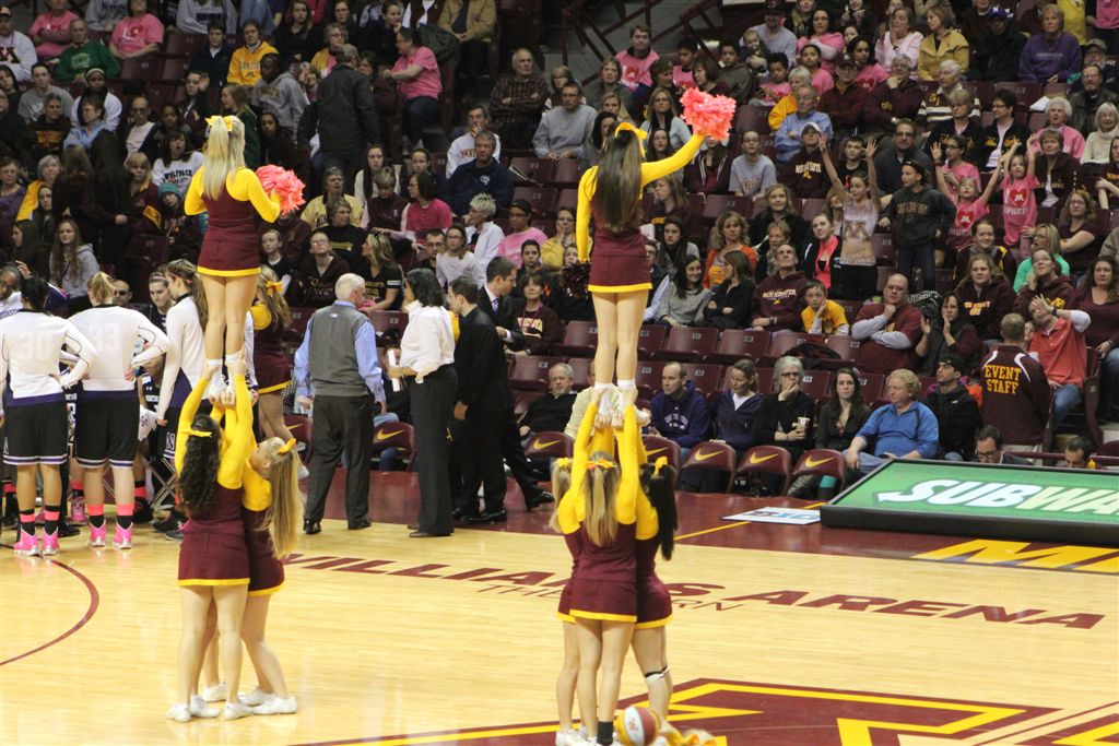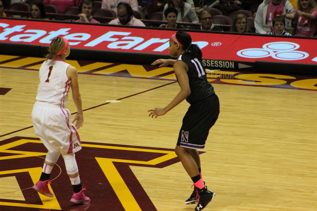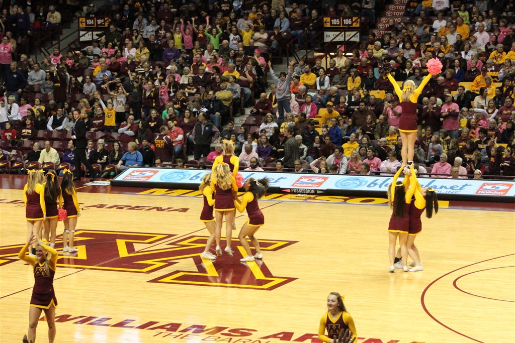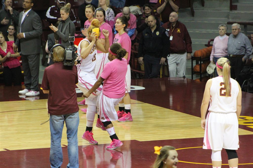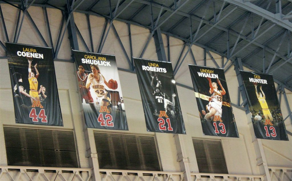 So now it’s the next day, Sunday. We went to Williams Arena to see the Gopher women’s basketball team play Northwestern. I have to be honest here – the Gophers are having an average year. I went to see Rachel Banham play. Rachel (1) is a 5’9″ sophomore guard from Lakeville and she leads the Big Ten in scoring. All the years Lindsay Whelan was starring for the Gophers, we always said we were going to gone down to see her play. We never did. I did not want to miss the next Lindsay Whelan.