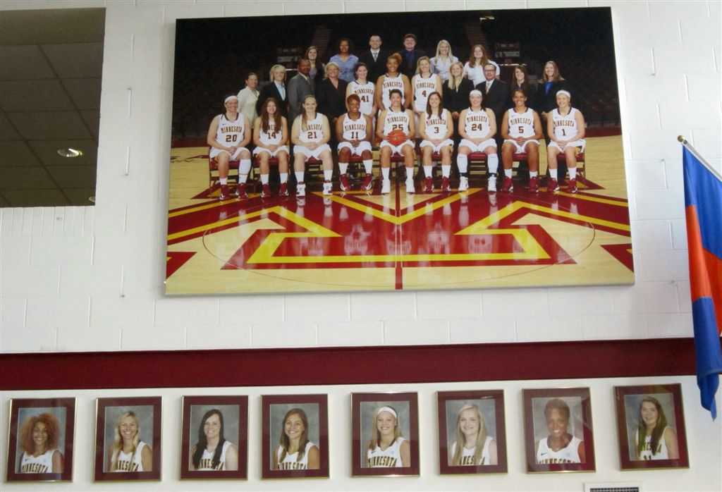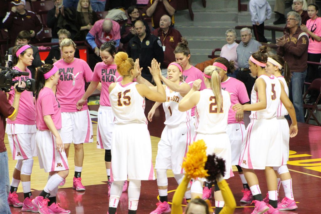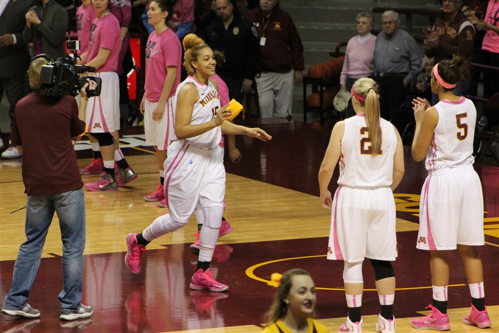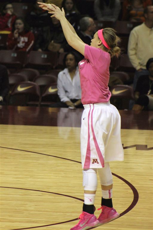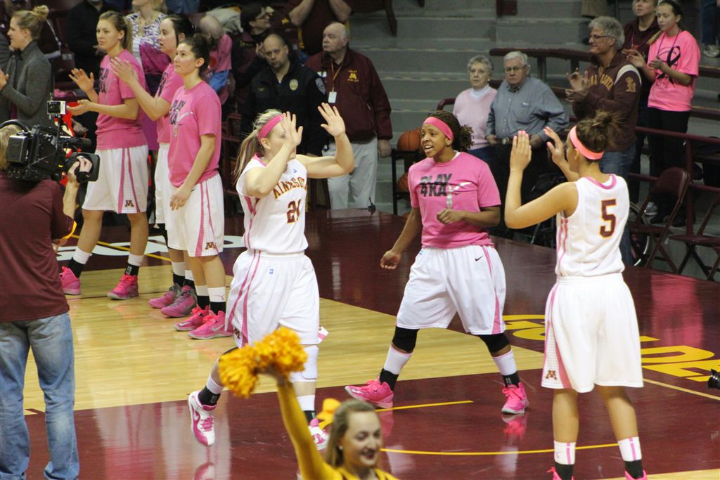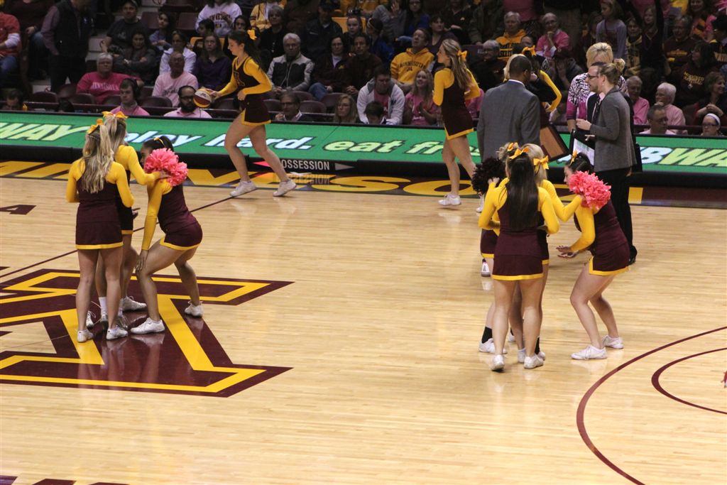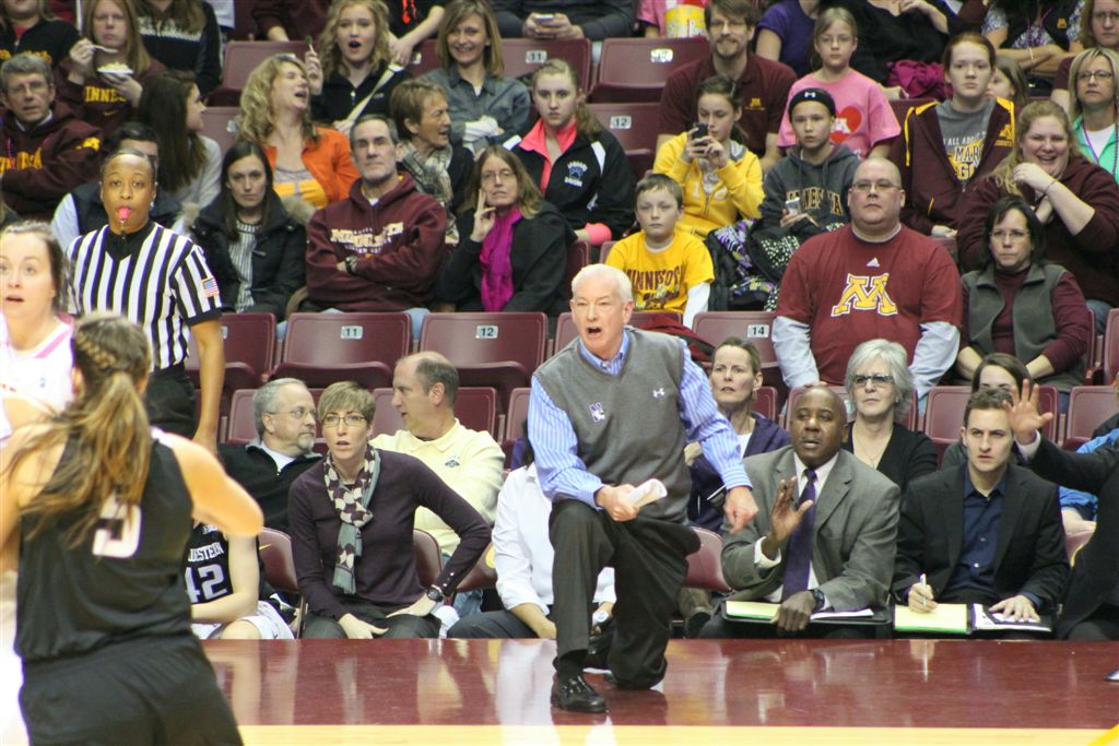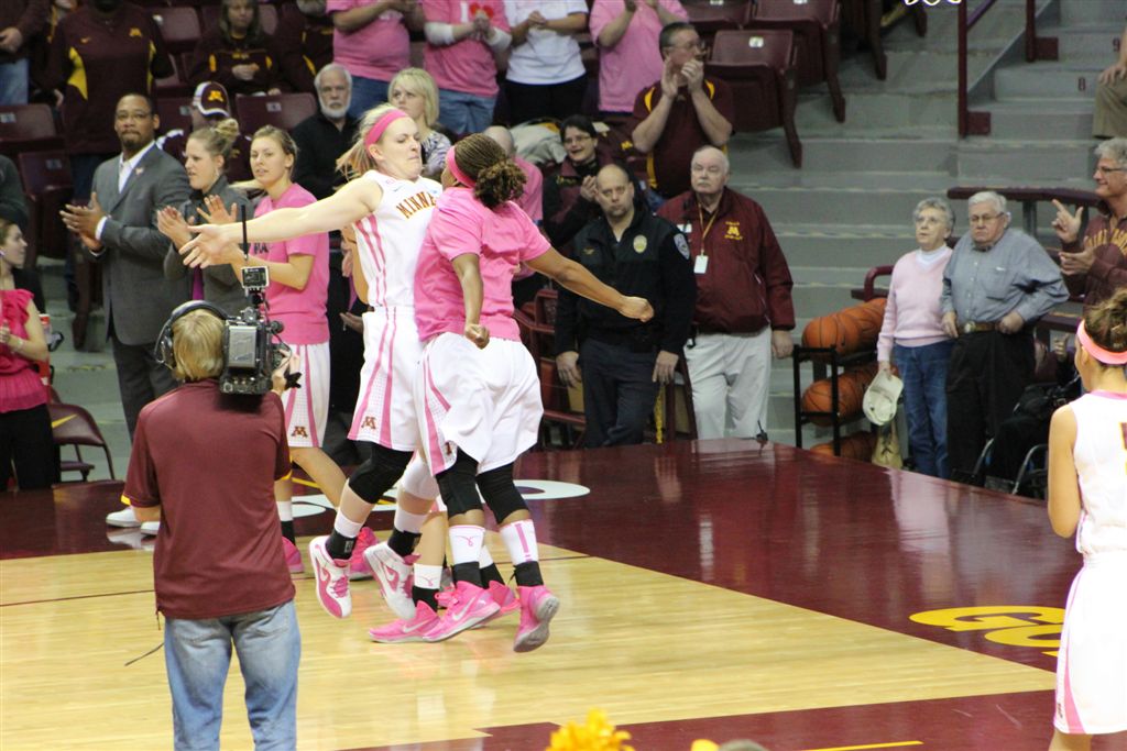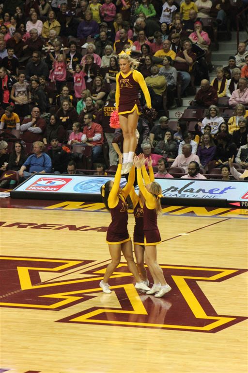 So now it’s the next day, Sunday. We went to Williams Arena to see the Gopher women’s basketball team play Northwestern. I have to be honest here – the Gophers are having an average year. I went to see Rachel Banham play. Rachel (1) is a 5’9″ sophomore guard from Lakeville and she leads the Big Ten in scoring. All the years Lindsay Whelan was starring for the Gophers, we always said we were going to gone down to see her play. We never did. I did not want to miss the next Lindsay Whelan.