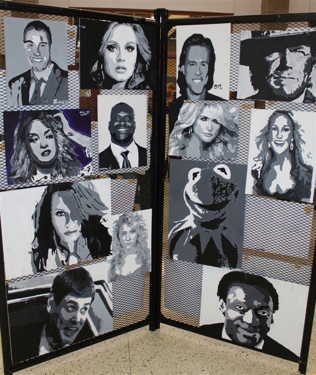 [Student art work in the entry area. I’m ashamed to think I’m a photographer.]