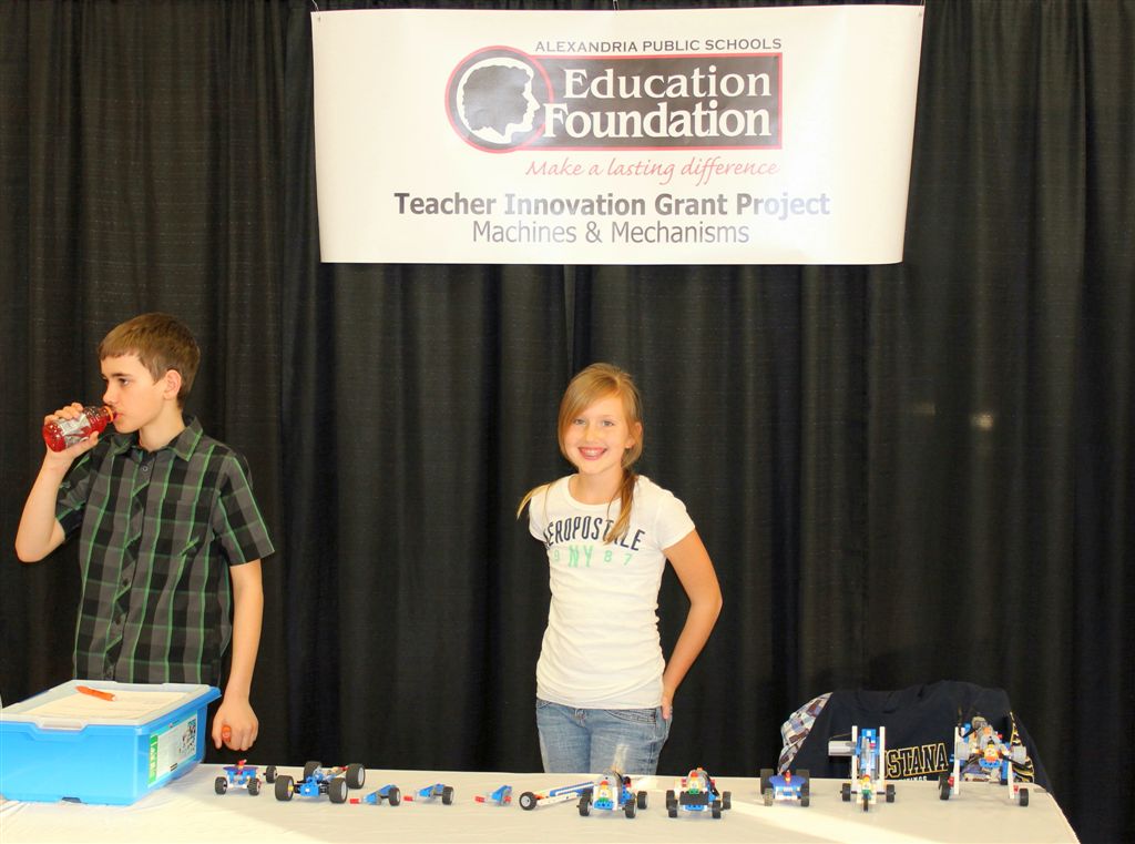 [Then we had to go check the displays on projects for which the Foundation gave grants this past year. The young man showed us an example of differential gearing (at least that’s what I thought he said) using the Lego models they created. The young lady did the same for “worm” gearing. I had no idea what they were talking about.]