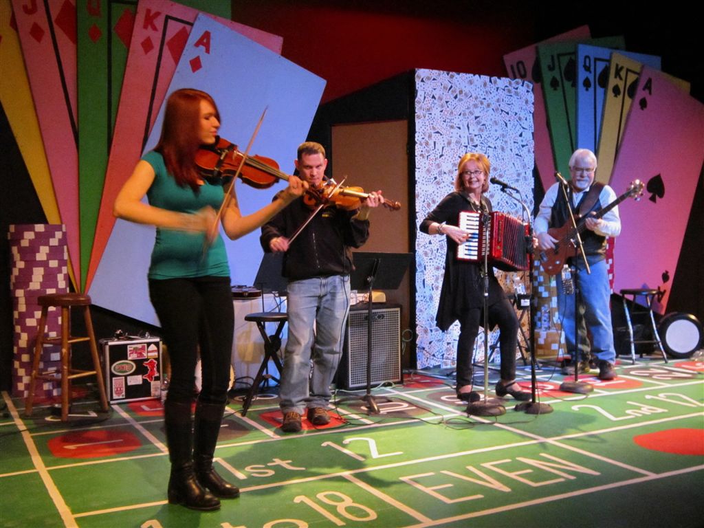 [From the left: I’m sorry, I don’t recall the fiddler from Willmar, then Annie, Bruce, and Mikko.]