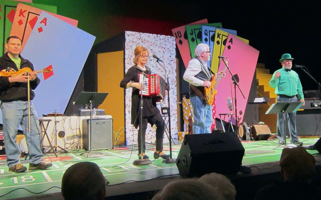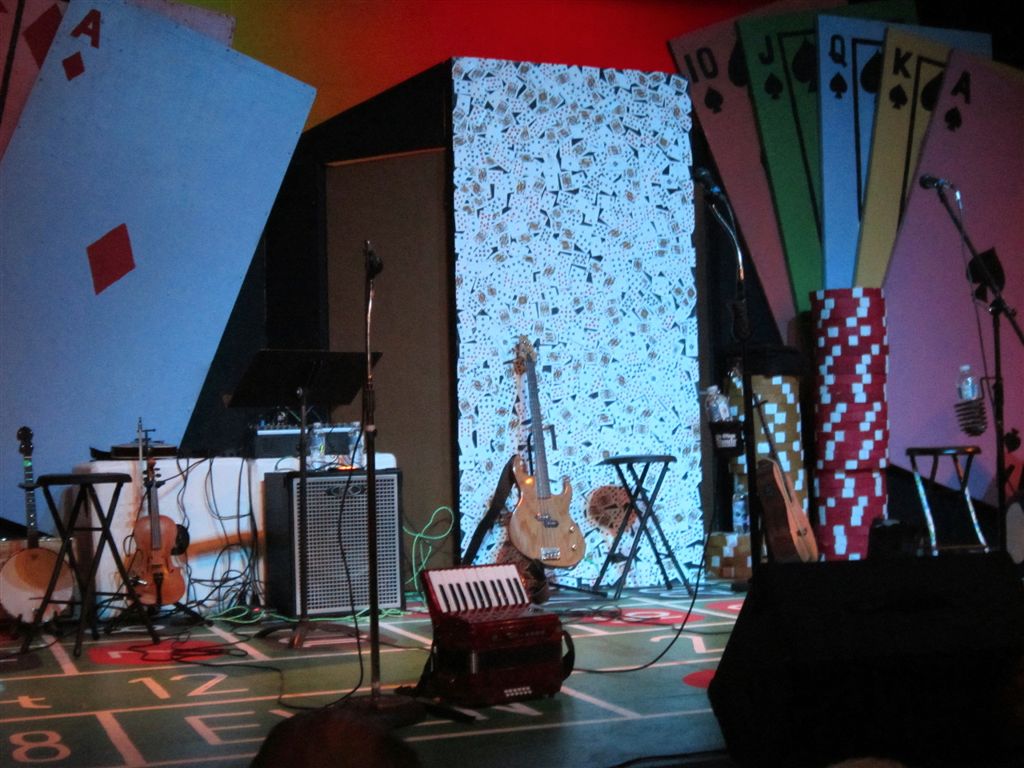 [They got to perform on the set of Lucky Stiff, the next play in mid-April.]