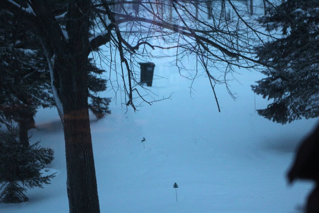 [Monday mornings are for garbage pick-up. For at least the last four, they have followed weekend weather events that have created logistical difficulties in reaching the end of the driveway. At times, the supervisor has had to call the fire and rescue squad to find out what happened to me. This morning she was to “capture” me hauling “the can” (as opposed to “my can”) down to the end of the driveway. Technical difficulties apparently were responsible for the lack of such photo. But here I am on the return trip, knowing we would have to be plowed out for the 2nd time this year, and for only the 4th time in 12 winters here! Yesterday, on St. Paddy’s Day, it was minus 2 degrees (17 below wind chill) – last year it was 80 on St. Paddy’s Day! As a trained (well, educated) geographer, this is the perfect example of a continental climate. We will be approaching record low temperatures for each of the next 3 days, with below zero temperatures each day. Nothing above 30 degrees listed for the next week. This is late March – we’re putting the Christmas decorations back up.]