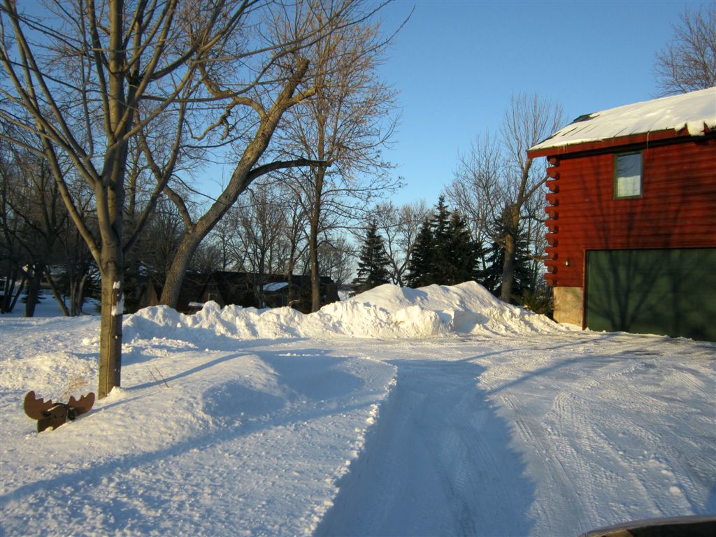 [The weekend blizzard allegedly only produced 5 inches of snow in Alex. But a couple days of high winds stacked drifts across our driveway in sizes to large for the supervisor and me to tackle with our shovels. This was only the fourth time (2nd this year) we have had to be plowed out!]