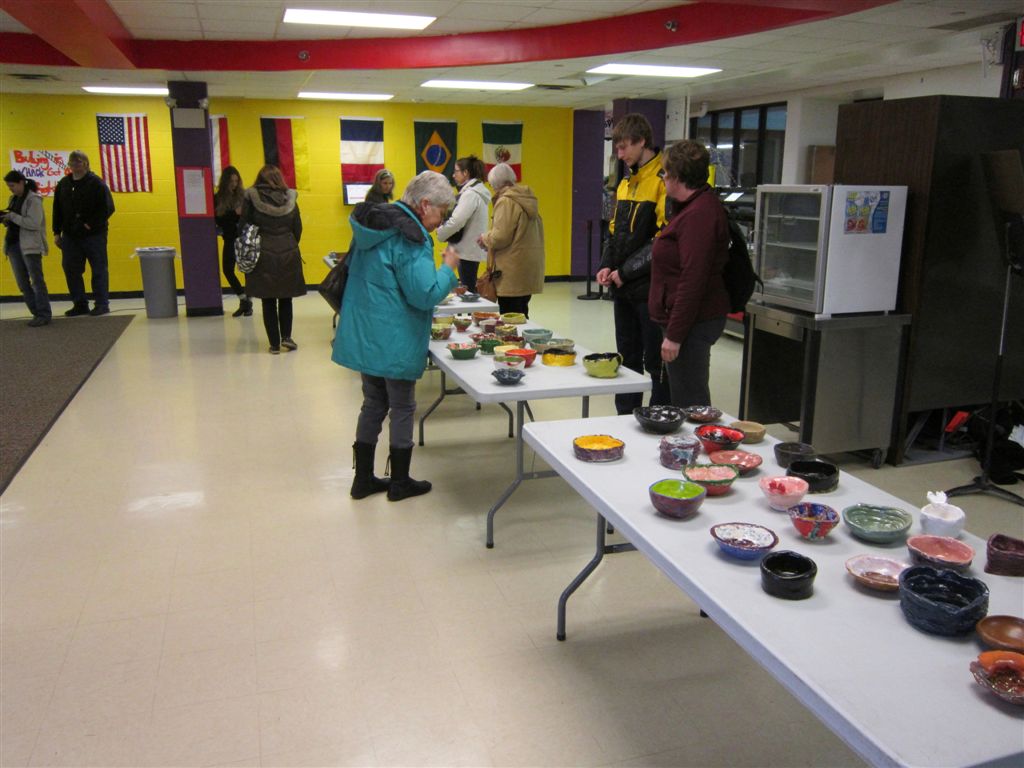 [We were rescued in time for the Empty Bowls Fundraiser at the high school last night. If you go back one year in the blog, you’ll notice we went to this same event last year in shirt sleeves.]