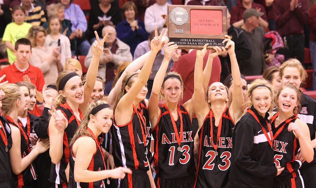 But, before I forget (see top), a look back to see what happened in the past some time ago before the current time and is now history (thus completing in the most redundant sentence of all time). I was amazed that Fergus Falls didn’t do better in the state tournament. After an undefeated season and edging out our Cards in the section final, the Otters lost in the first round. I watched a good part of the tournament, all 4 classes, and Alex could have competed against any team I watched, except for the big city exceptionals of De La Salle, Bloomington Kennedy, and Hopkins. In fact Hopkins would beat the Gophers – they were bigger and more athletic. [Insert photo: Likely 4 of the 5 starters for the 1965 Cardinal team, if there had been a Title IX then, and likely the student manager.]