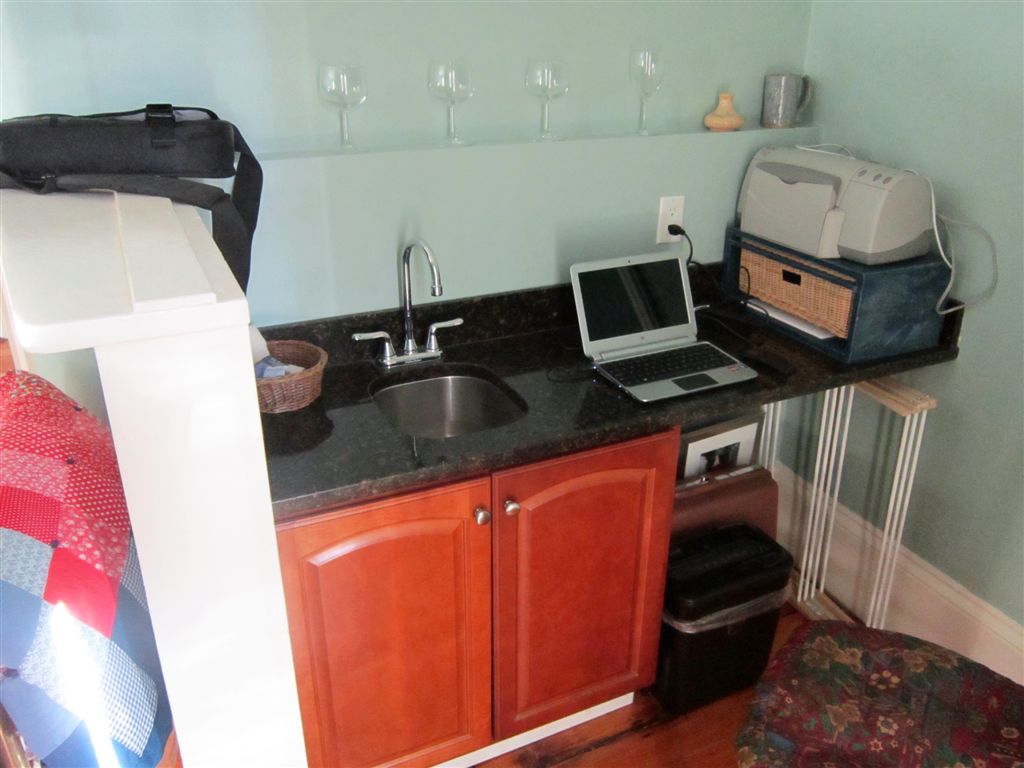 [The kitchen, just off our bedroom and bathroom, looking out into the dining room.]