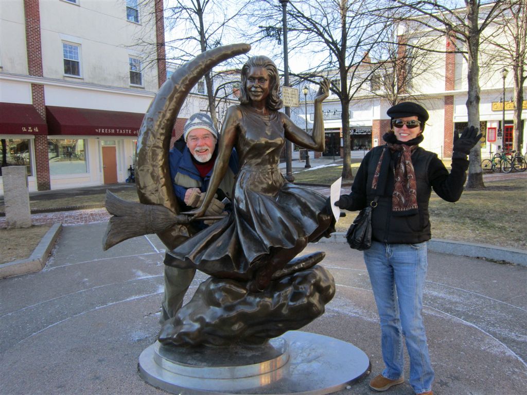 [We boarded the train at Boston’s North Station for the half hour commute to Salem. We were going to pay a visit to “old” D.C. friends, Rose (a native Minneapolitan) and Dick (a native of Massachusetts) McMullen, who had just moved their winter residence from Rockport to Salem. Salem, of course, is famous for its witches – and look, here are two right now! 😉 ]