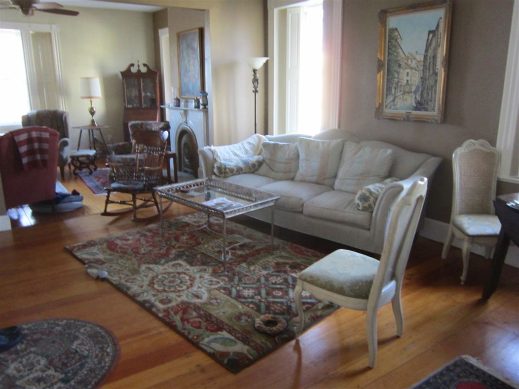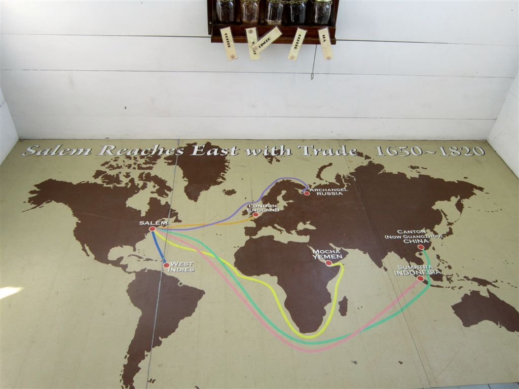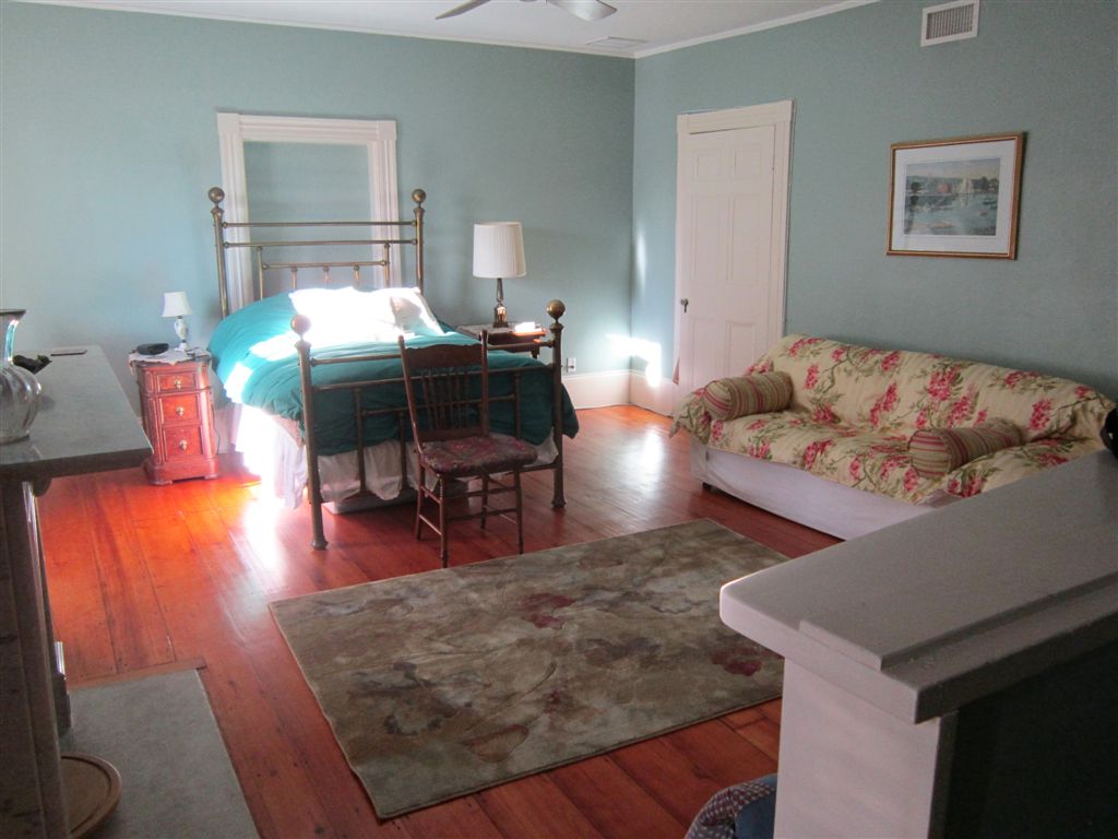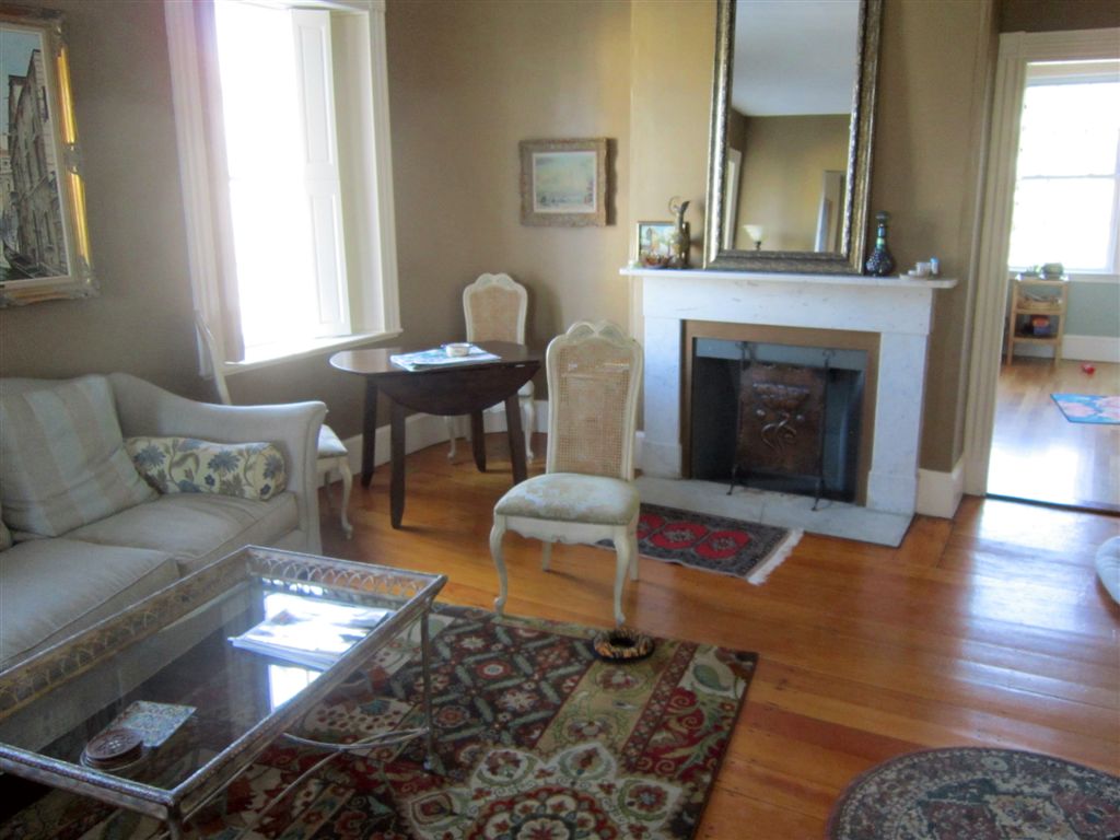 [Salem, like all places in the Northeast, is noted for being really old. There are some nice things that go along with that. Rose and Dick bought a condominium in a 200-year old building. The size of the rooms and height of the ceilings are impressive. This was our bedroom – the guest bedroom! We could have played a basketball game in here!]