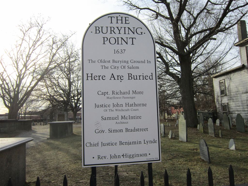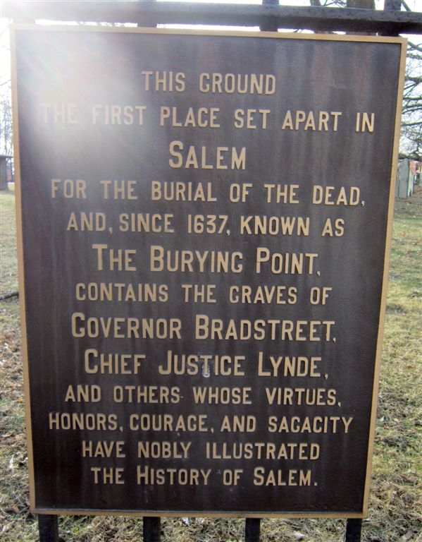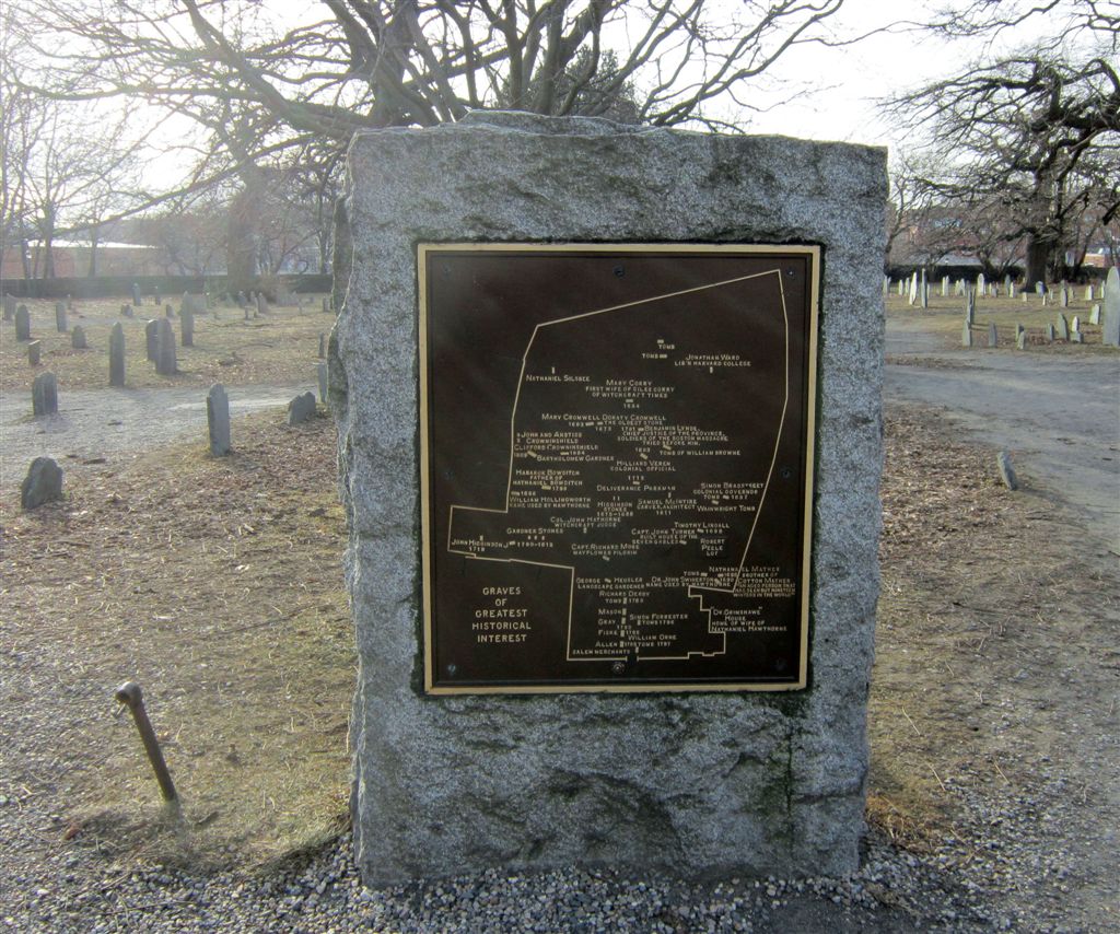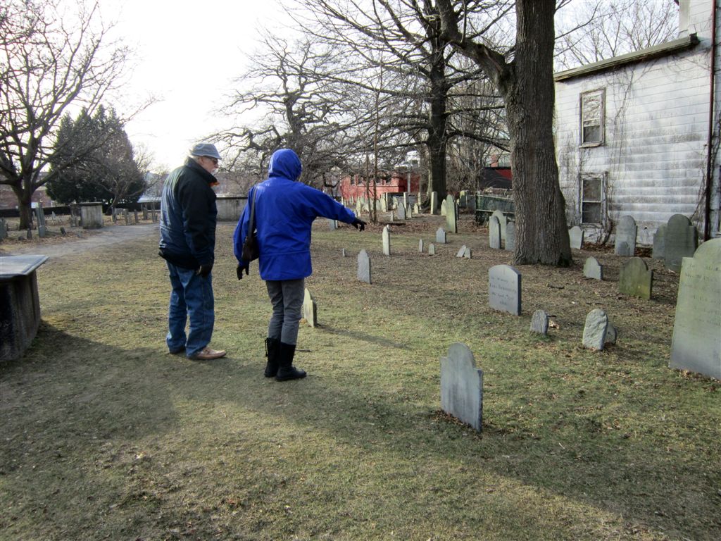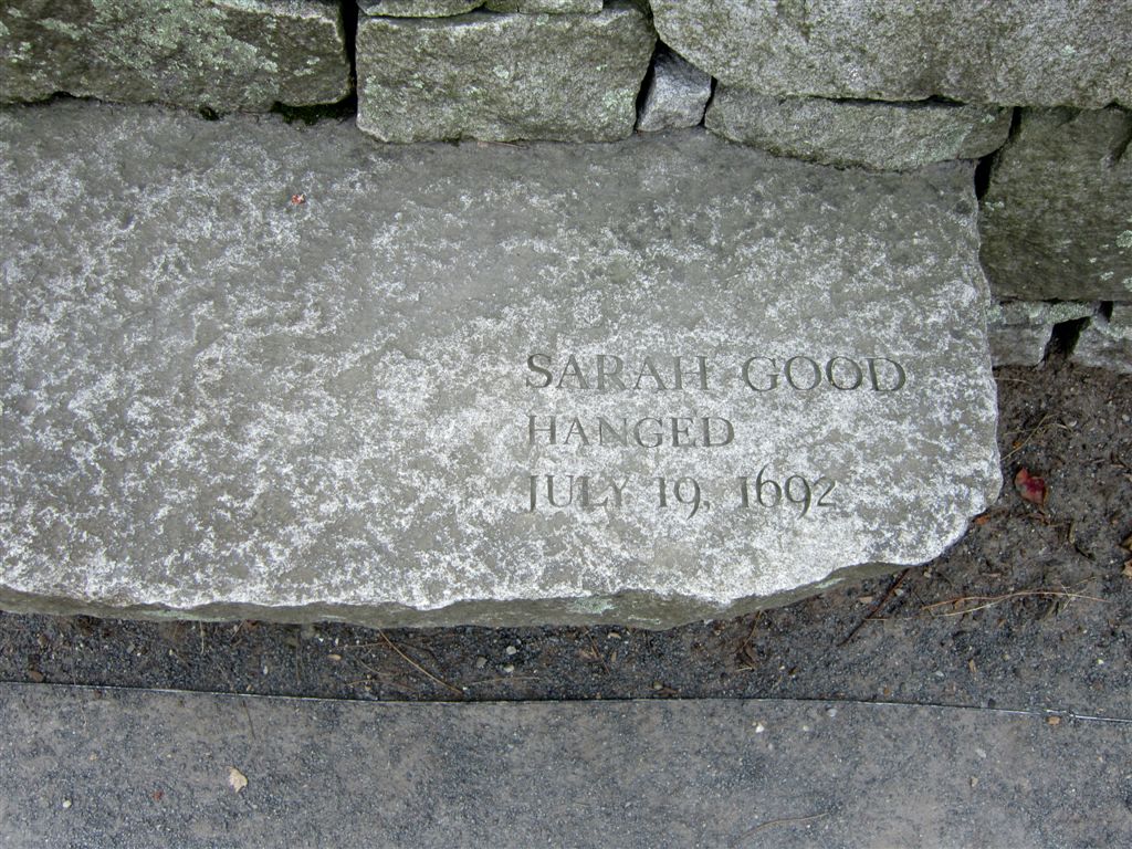 [A witch (?). There were a circle of these markers in the cemetery – 1692 was the epicenter of the witch hangings. And these folks came to America to escape the religious persecution in Europe?]