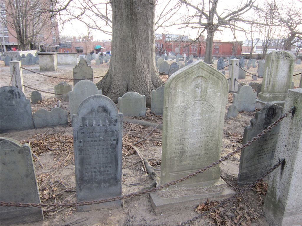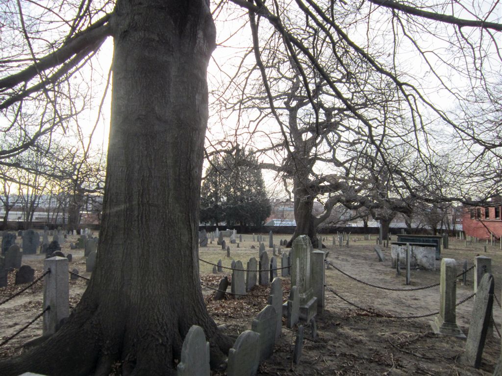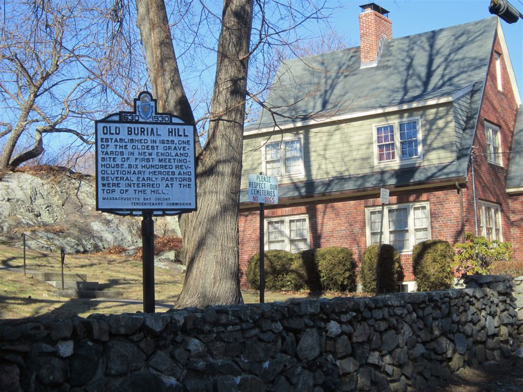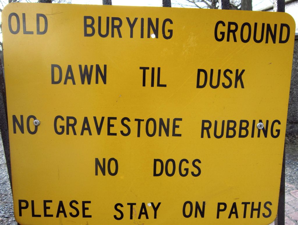 [A witch (?). There were a circle of these markers in the cemetery – 1692 was the epicenter of the witch hangings. And these folks came to America to escape the religious persecution in Europe?]