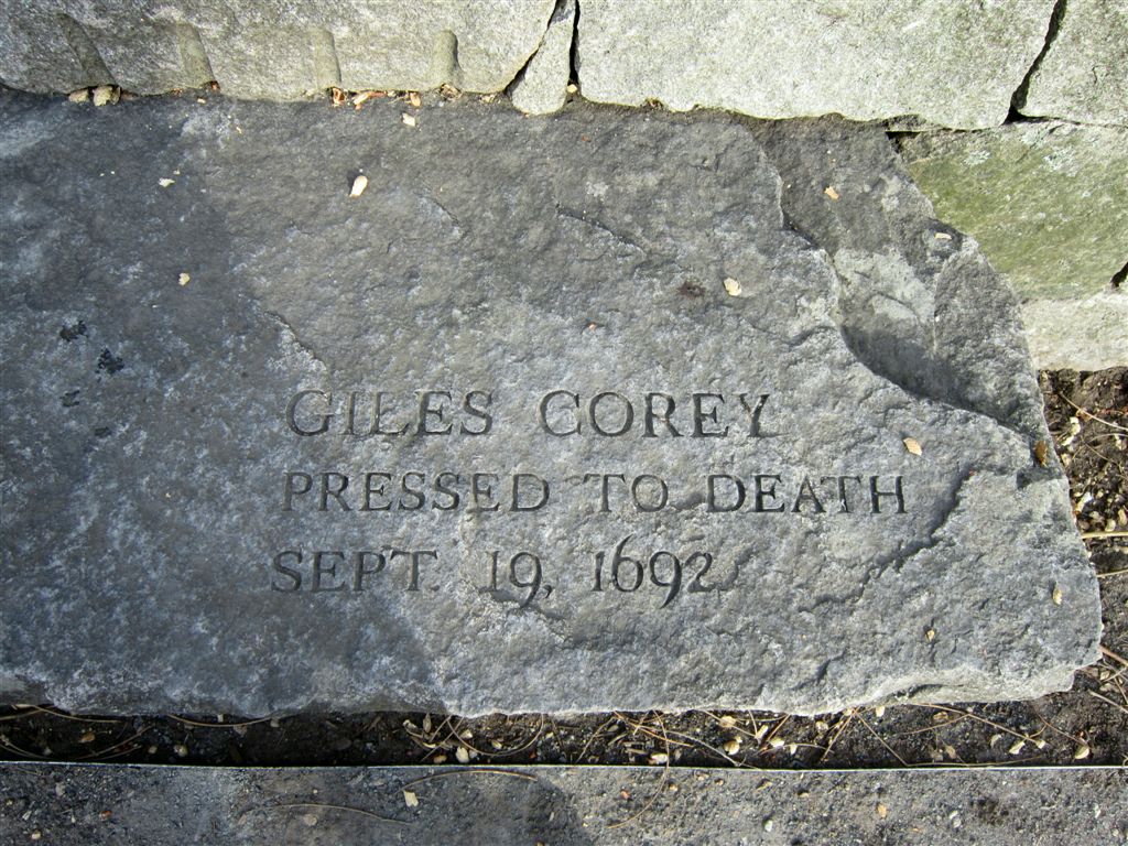 To clarify one point in your blog’s narrative about Salem – Gile Corey (your “warlock”) wasn’t really protecting his wife in being crushed. In fact when she was first accused, he believed she might be a witch because all the respectable judges couldn’t be wrong. I believe his wife was hung. But then when he was accused, he began to figure it out. He was crushed to death because he wouldn’t confess. Of course, if he had confessed, he probably would have been hung and consequently would have