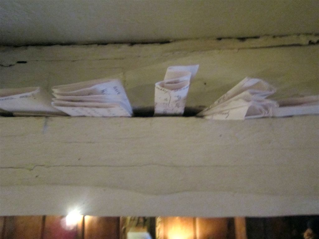 [Messages left by, or for (?), the ghosts in the rafters.]