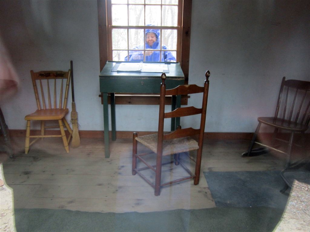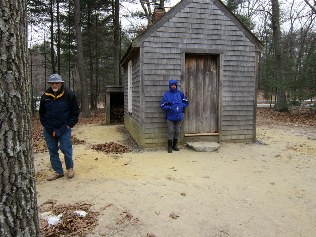 [Then it was on to Concord, and Walden Pond. The supervisor does a little window peeping in Thoreau’s replica home there.]
