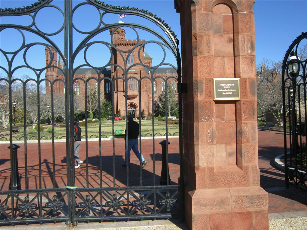 [Down in the Sculpture Garden and thankfully out of the wind. The building is the Hirshhorn.]